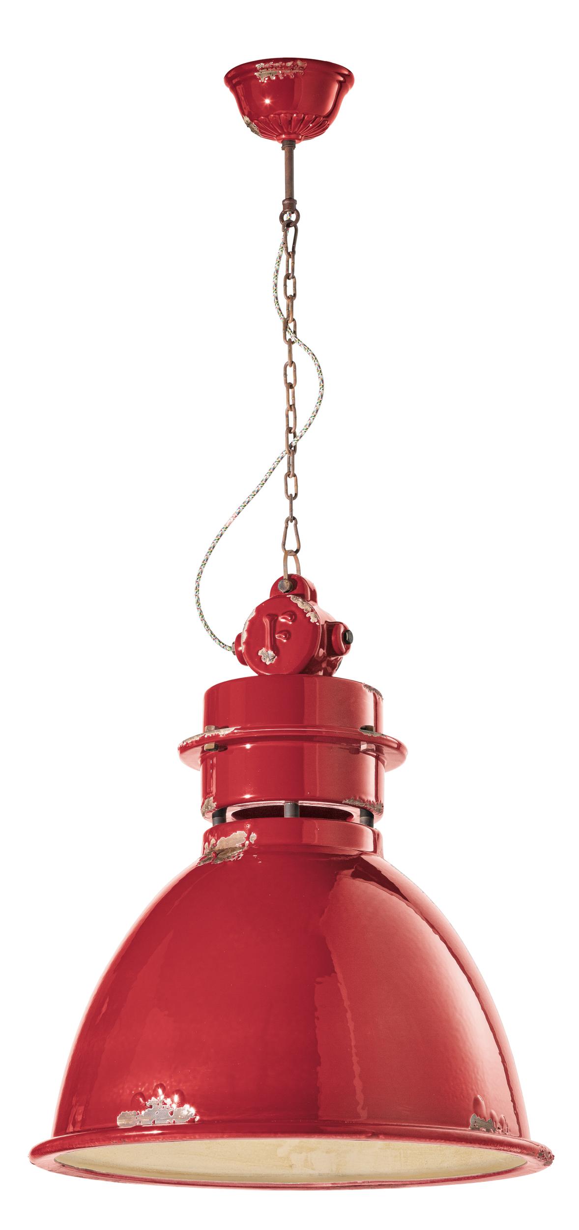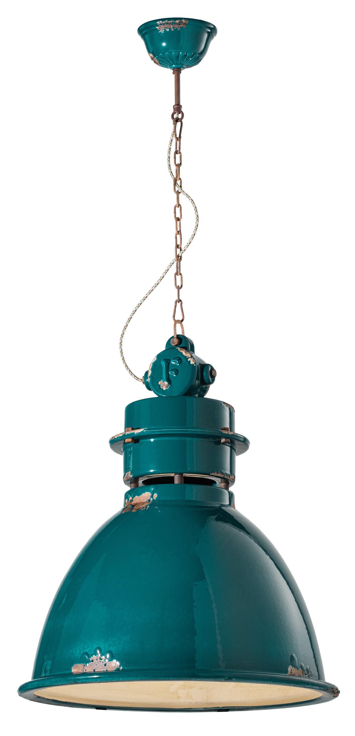 RETRO' INDUSTRIAL C1750 Hängeleuchte von Ferroluce. Keramiklampe mit Metallteilen und antiker Corteneisenkette und mehrfarbigem, ummanteltem Baumwollkabel.