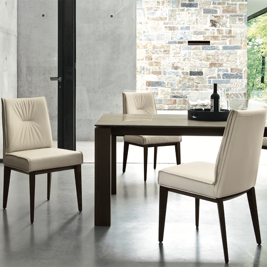 ROMY ist ein moderner und vielseitiger Polsterstuhl mit vierbeinigem Holzgestell. Die superweiche Sitzpolsterung mit elastischer Gurtstruktur sorgt für maximalen Komfort. Bequem und elegant fügt er sich perfekt in Ihren Essbereich ein. Wählen Sie den passenden Stuhl für sich.