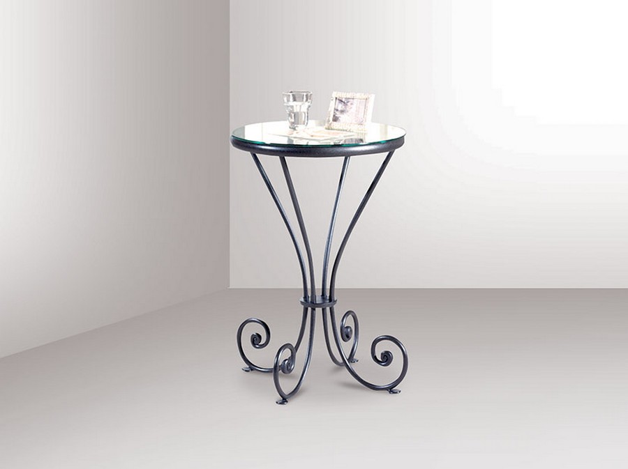 Nachttisch RUBINO von Pama. Betten aus Schmiedeeisen und Glasplatte.