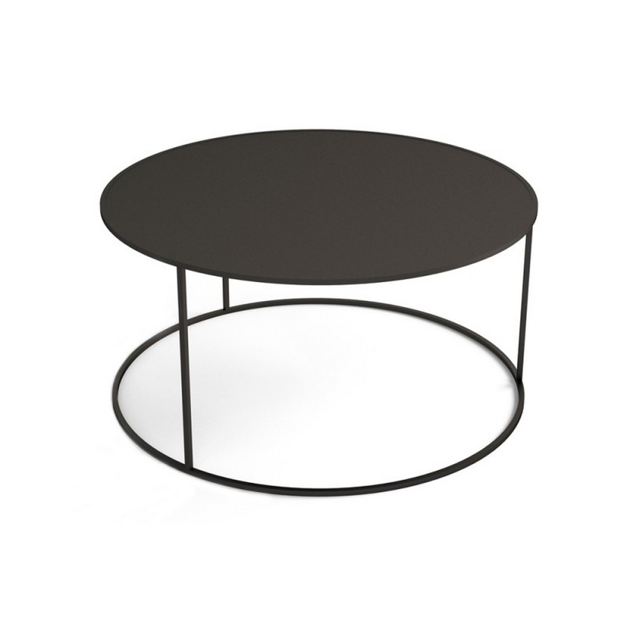 Runder runder Tisch aus 10 mm dickem Metall, montiert ohne sichtbares Befestigungssystem. Anthrazitfarbener Epoxidlack. Round zeichnet sich durch schlichtes Design und dünne Linien aus. Perfekt für die raffinierte Einrichtung Ihres Wohnzimmers.