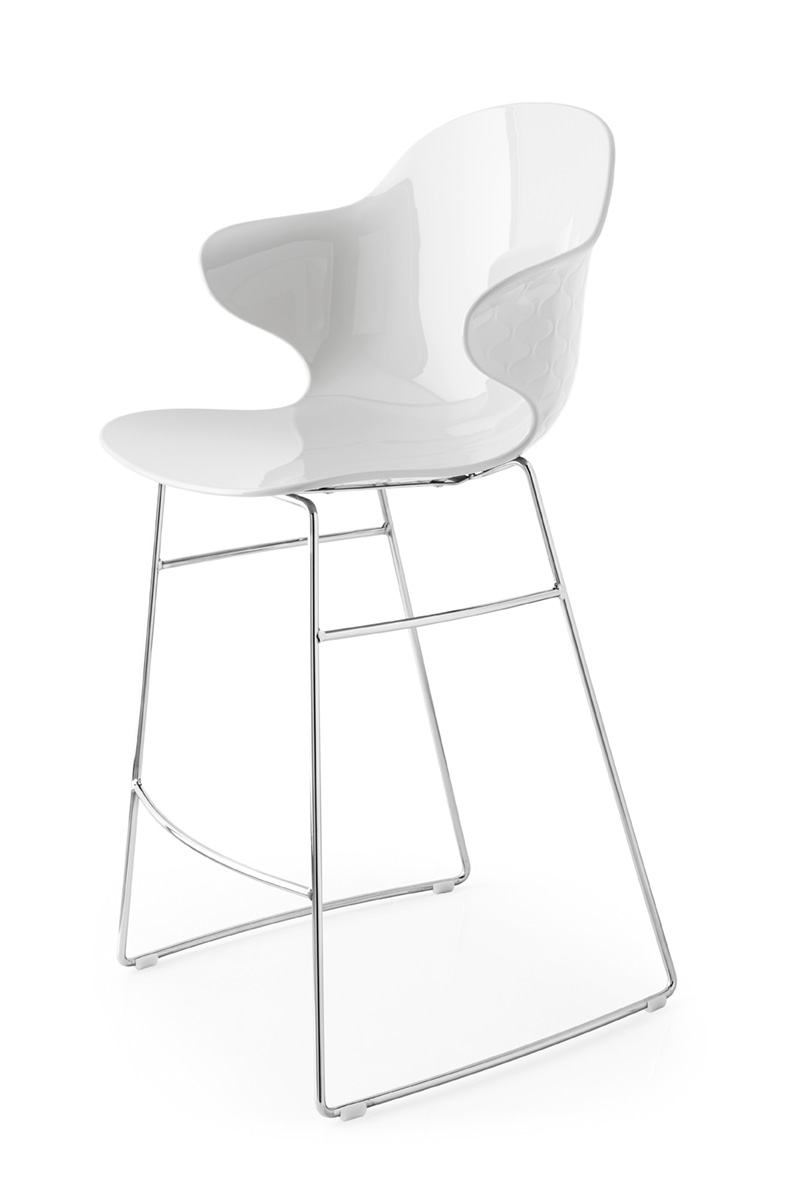 Die Kollektion SAINT TROPEZ überrascht immer wieder aufs Neue mit der Einführung der Hockerversion, die mit den gleichen Oberflächen wie der Stuhl individuell gestaltet werden kann.