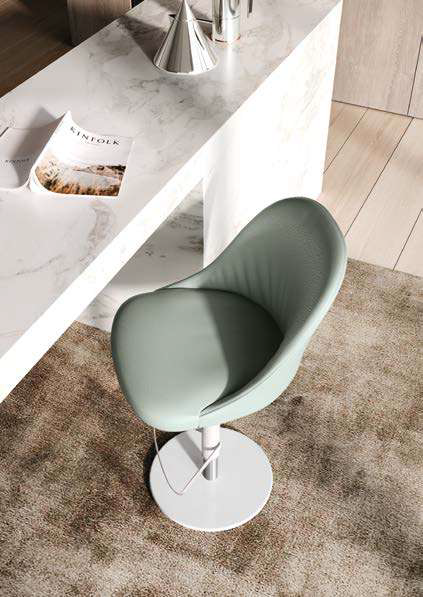 Sam Hocker von Ingenia mit lackiertem Stahlgestell ist in zwei Ausführungen erhältlich: mit vier Beinen oder mit drehbarem Fuß und verstellbarer Chrom-Gasdruckfeder. Erhältlich mit Polypropylen-Monocoque-Sockel oder gepolstert und bezogen in verschiedenen Ausführungen. Die Outdoor-Version hat ein lackiertes Stahlgestell mit Sitz und Rückenlehne aus Polypropylen und Fiberglas.
