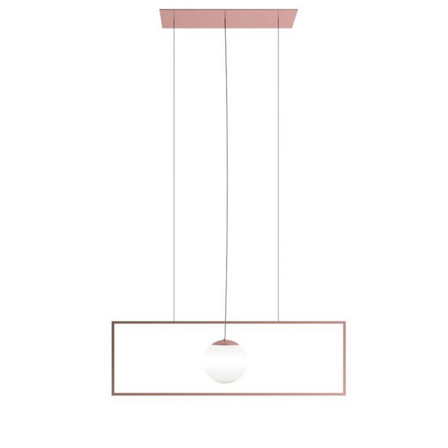 Hängeleuchte View mit anthrazit- oder rosévergoldetem Gestell und Kugel in weißer oder taubenfarbener Muranoglaskugel. Horizontale Version.