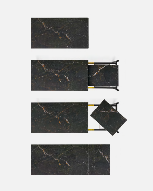 STREAM CS4139-R Tisch von Calligaris. Das besondere Merkmal des ausziehbaren Tisches Stream ist der originelle Querschnitt der Beine, der durch ein für Tische dieser Kategorie ungewöhnliches Subtraktions- und Schleifverfahren erzielt wird. Er ist kompakt und leicht zugänglich. Die Beine tragen eine Tischplatte, die in verschiedenen Materialien und Ausführungen erhältlich ist und sich dank eines Systems mit wenigen Handgriffen leicht ausziehen lässt. Charakteristisch sind die schlanke Struktur aus lackiertem Aluminium und die Tischplatten aus Holz oder Keramik. Der Öffnungsmechanismus im Buchstil besteht aus dem gleichen Material wie die Tischplatte.