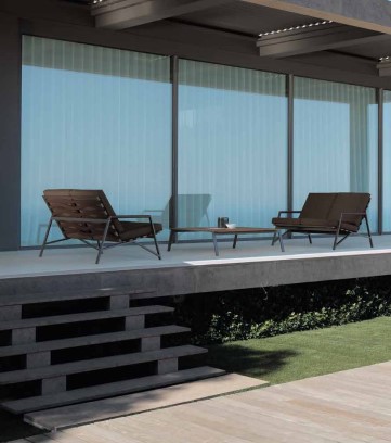 Die Outdoor-Sofas der Cottage-Kollektion bestechen durch ihren rustikalen Charme, inspiriert von traditionellen Sitzmöbeln des Wilden Westens. Das Aluminiumgestell und die synthetischen Sitz- und Rückenlehnenbezüge des Cottage-Sofas harmonieren perfekt mit traditionelleren Materialien wie dem Seilbezug der Armlehnen.
