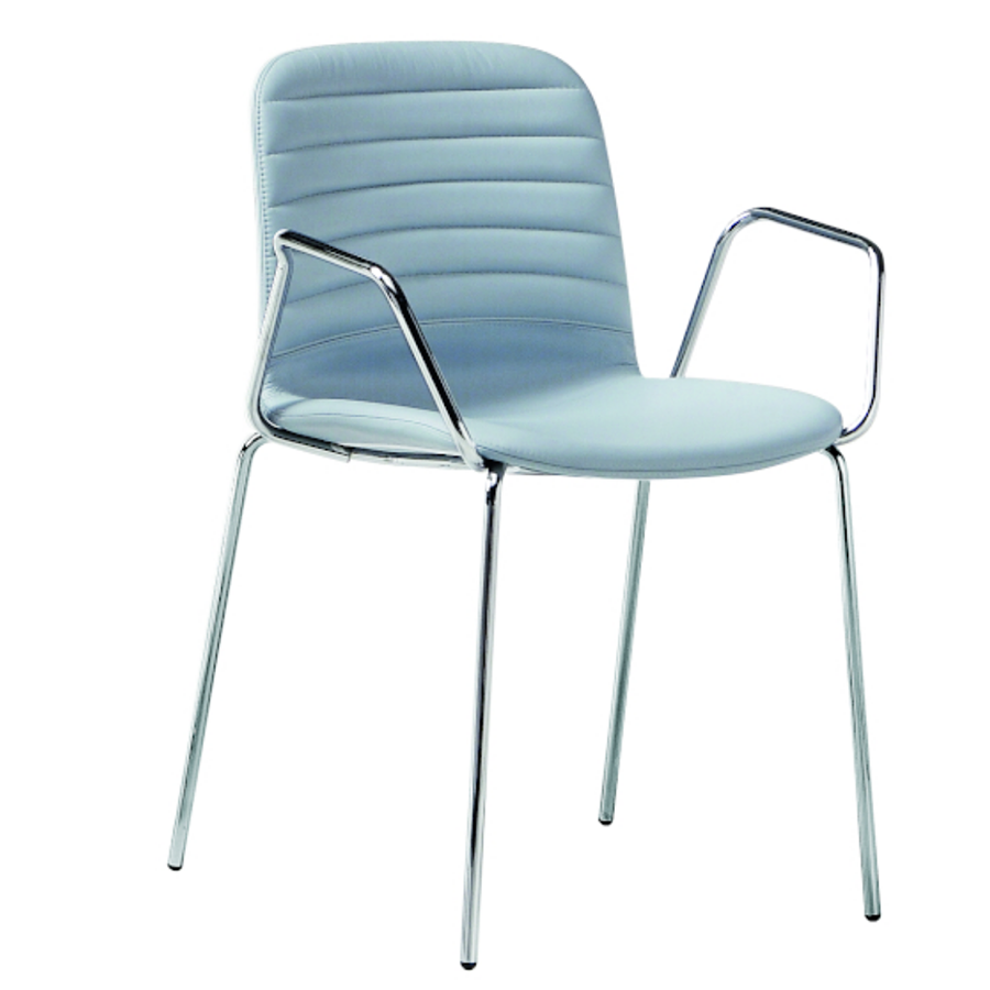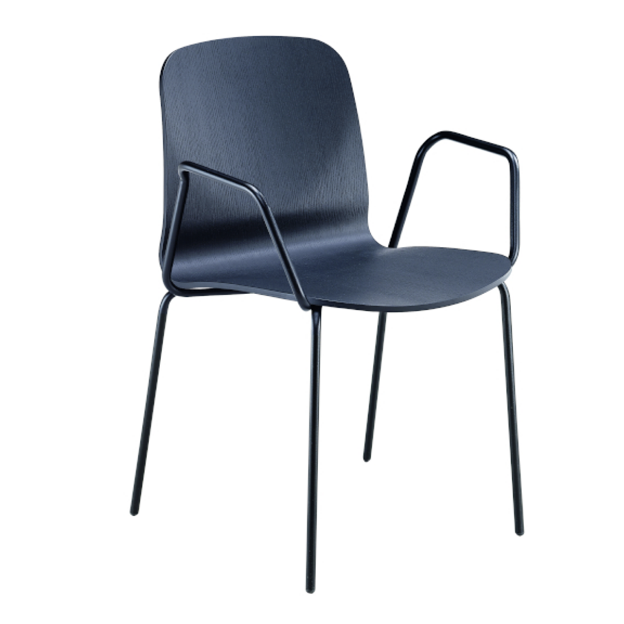 Liù Stuhl mit Armlehnen. Basis mit vier Beinen aus Stahl, Schale aus Holz.