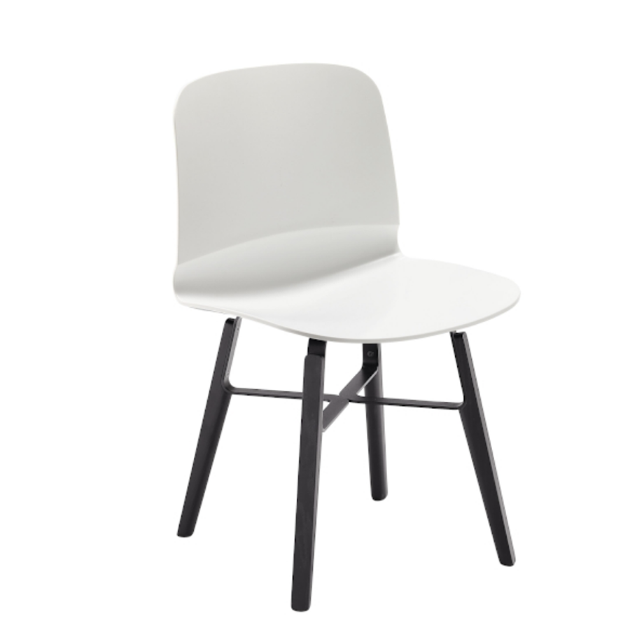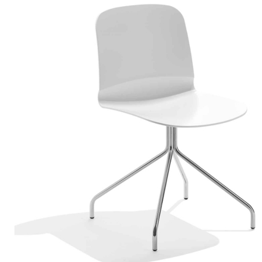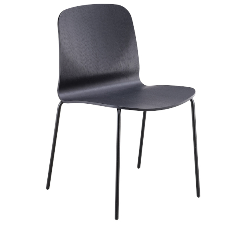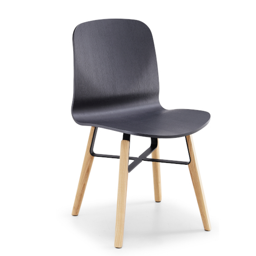 Stuhl Liù auf festem Gestell aus Stahl. Schale aus Holz.