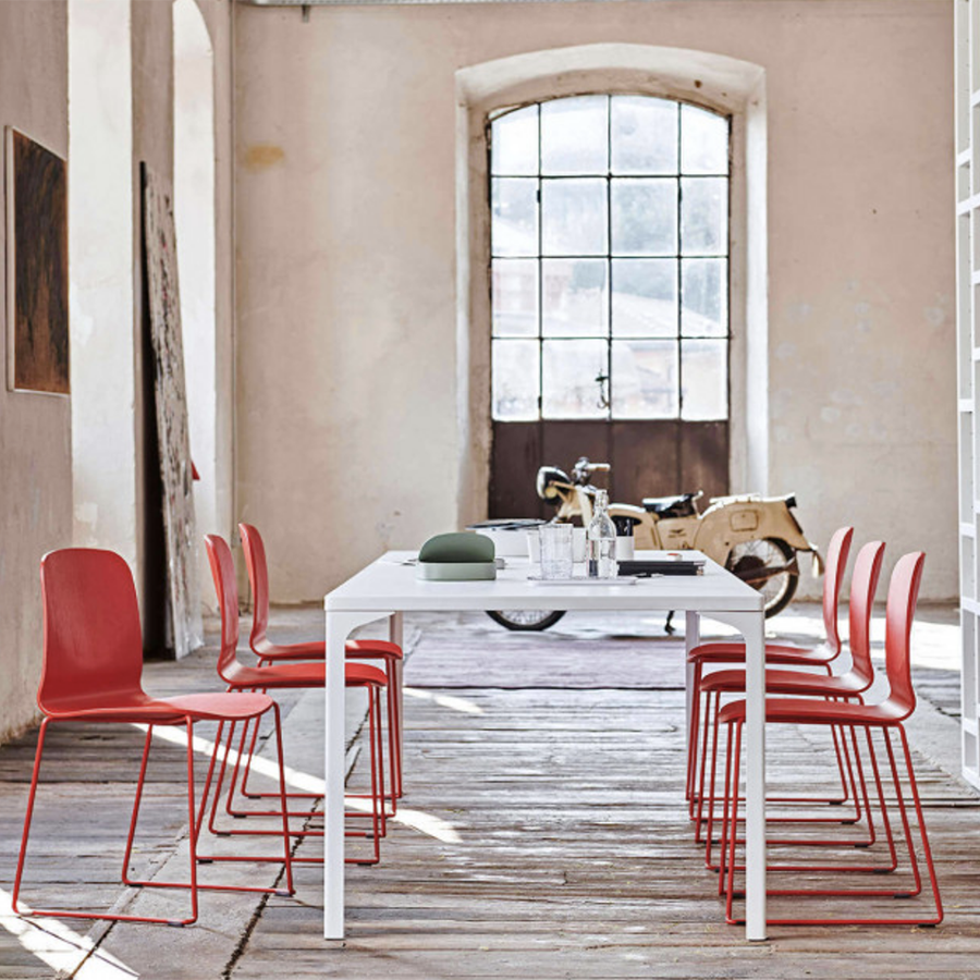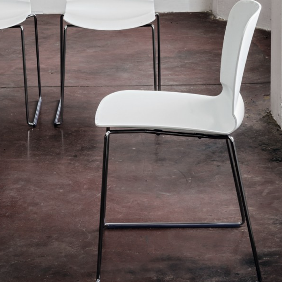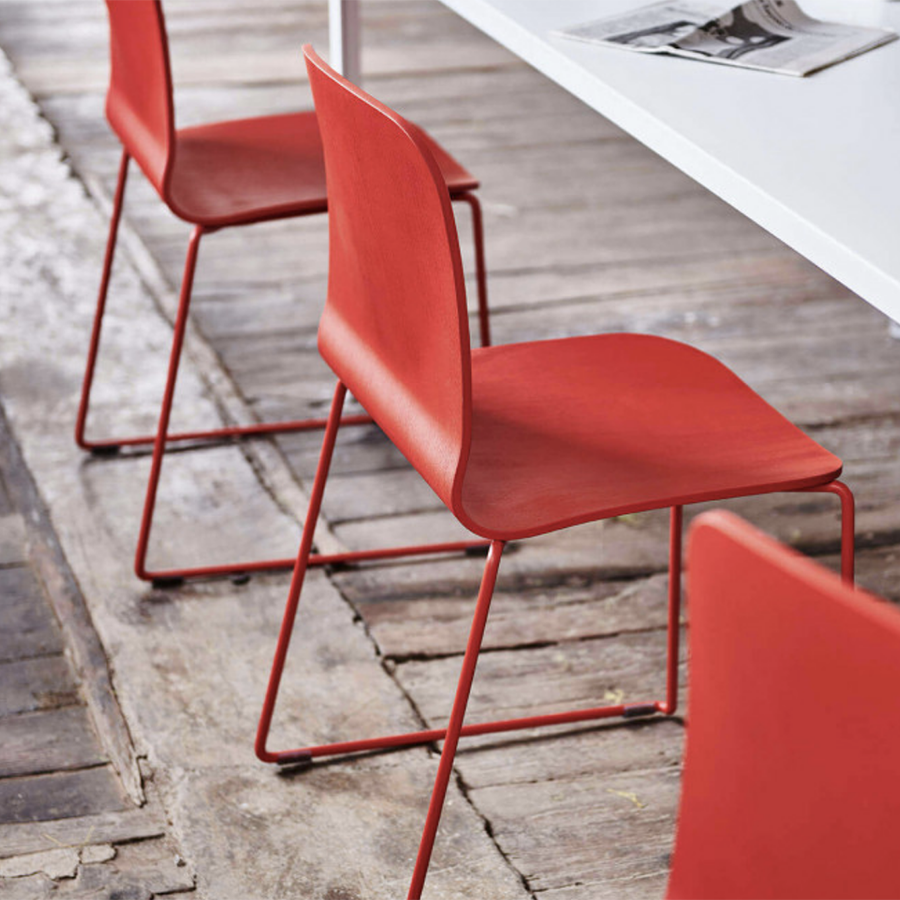 Liù Stuhl mit Kufengestell aus lackiertem Stahl. Schale aus Holz.