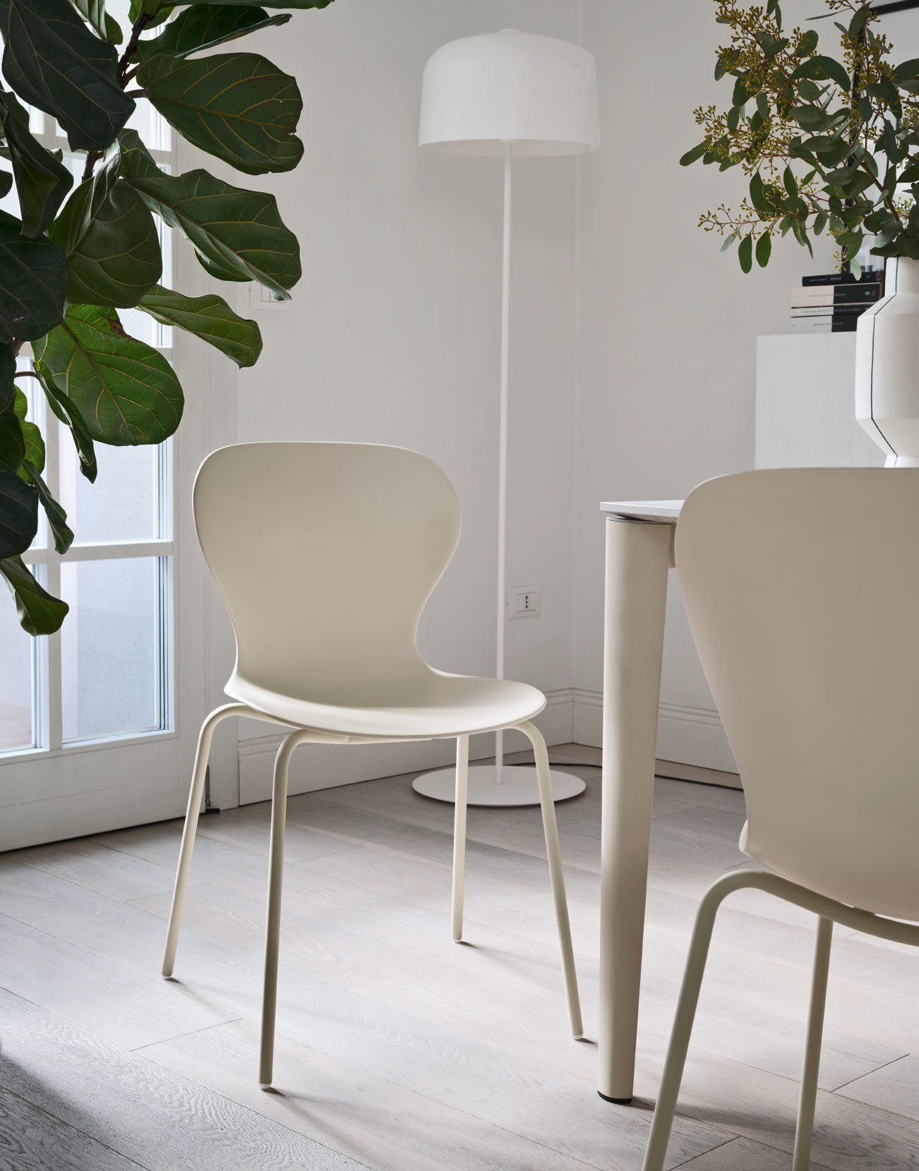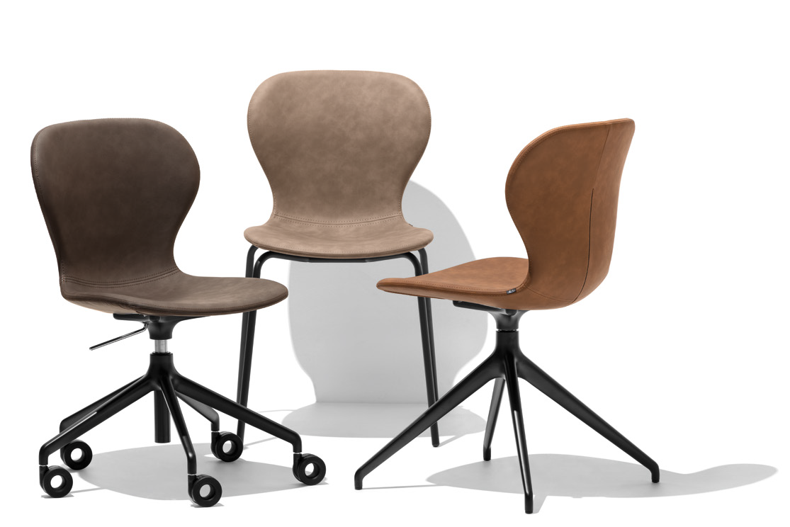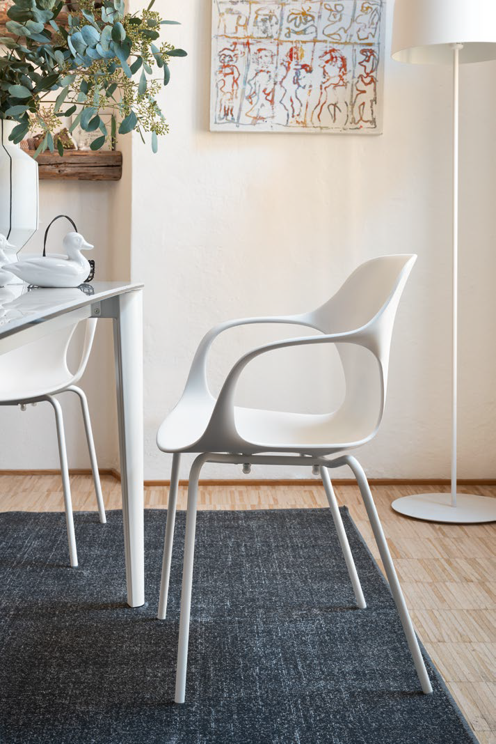 Die Ops! Der vom Studio Archivolto entworfene Stuhl besteht aus recyceltem Polypropylen und erstmals auch aus recyceltem Kunststoffmaterial aus der Wiederverwertung von Lebensmittelverpackungen.