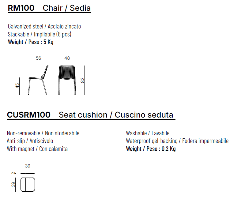 cm: L. 48 x T. 56 x H. 82 x HS. 45