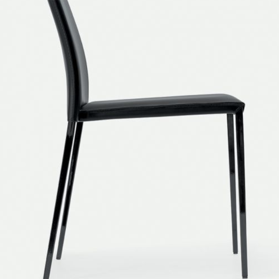 Tai Flex Stuhl von Bontempi mit lackierter Stahlstruktur, gepolstert und mit Stoff, Kunstleder, Leder oder Lederfaser bezogen. Der Tai Flex Stuhl von Bontempi hat das gleiche Aussehen und die gleichen Abmessungen wie sein Schwestermodell Tai, zeichnet sich jedoch durch seine flexible ergonomische Rückenlehne aus.