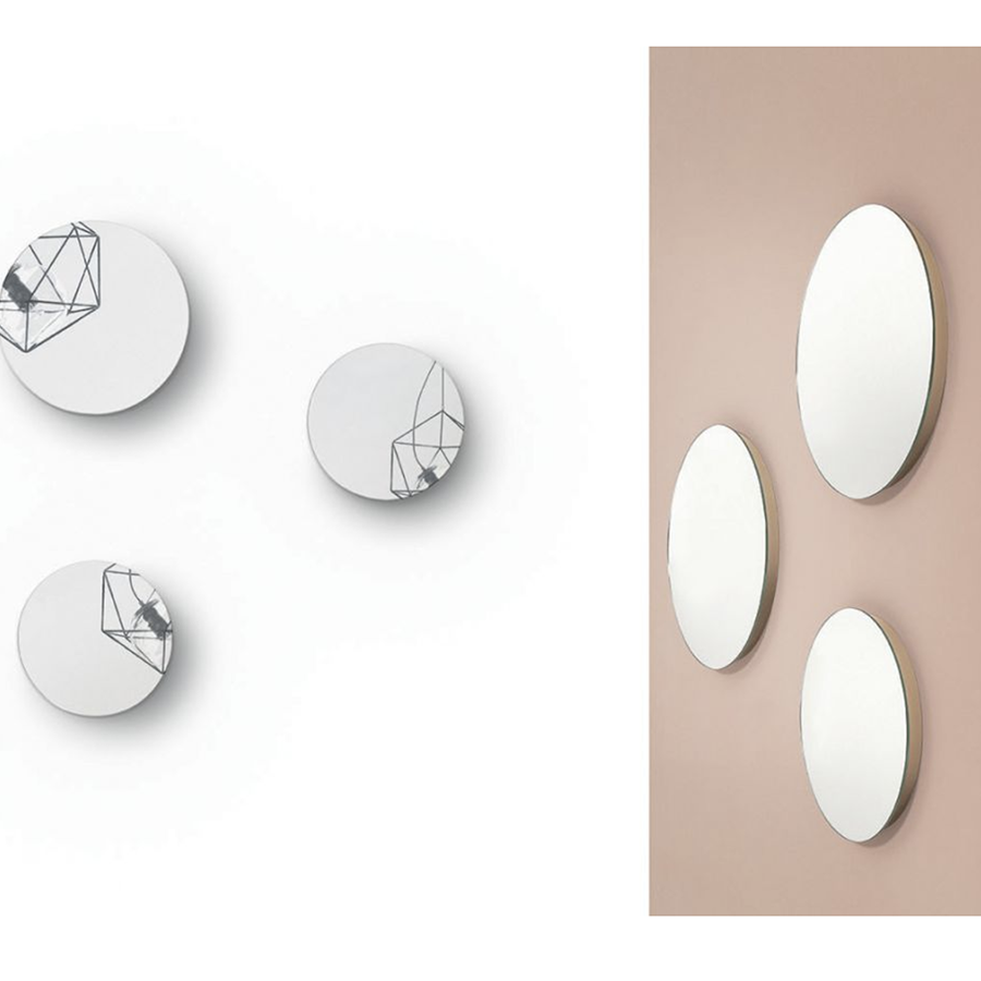 Runder Spiegel von Bontempi, in den Ausführungen mit 36 cm und 45 cm Durchmesser gibt es einen Rückrahmen aus lackiertem Stahl, der in zahlreichen Ausführungen erhältlich ist.