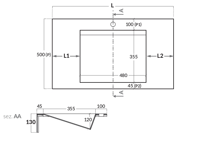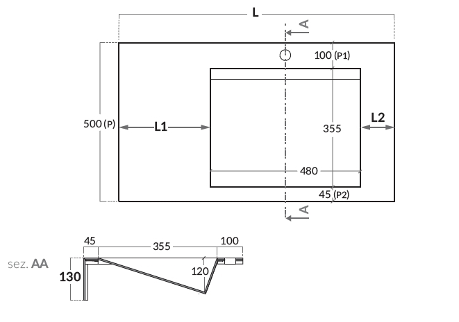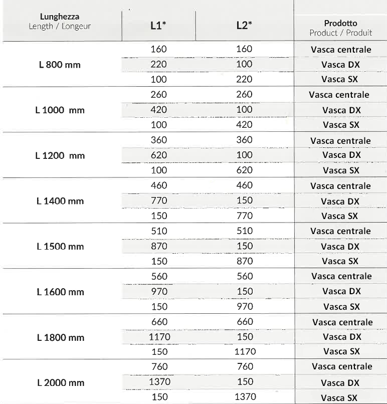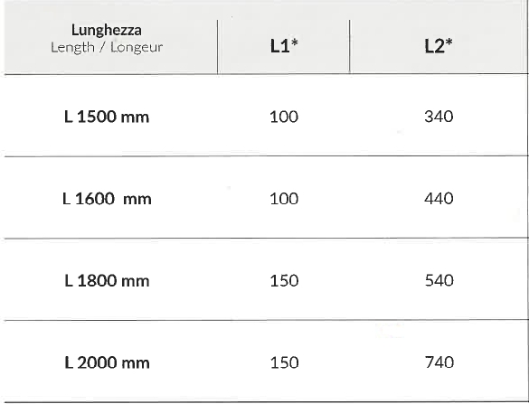 *Anpassbare Maße: L1 mindestens 50 mm - L2 mindestens 100 mm
