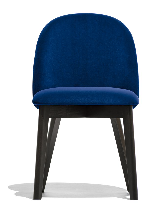 Tuka CB1994 Stuhl von Connubia mit vier Beinen aus Buchenholz. Feste, gepolsterte und bezogene Schale mit umhüllender Rückenlehne und abgerundeter Sitzfläche.