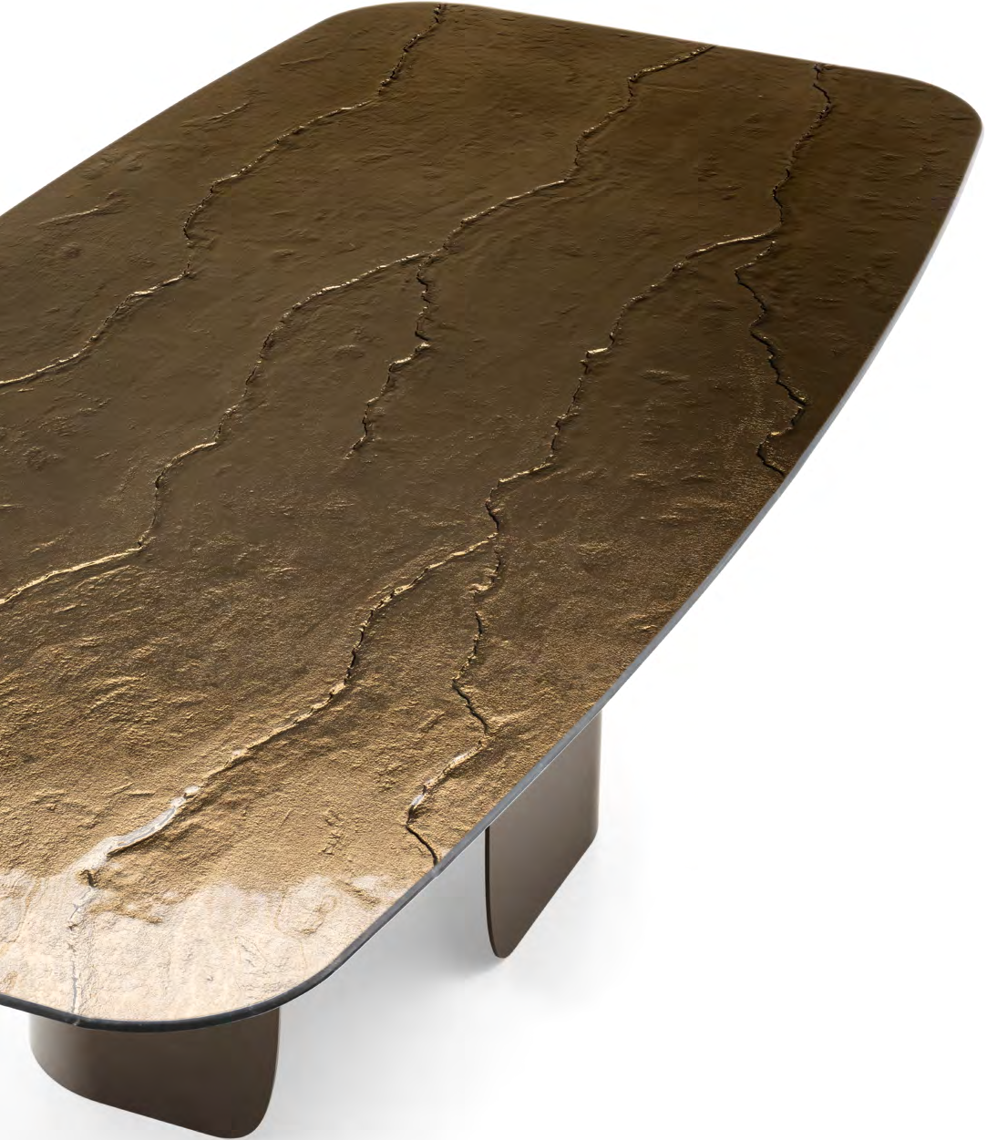 Twins Tisch von Calligaris. Twins ist ein Tisch mit einer beeindruckenden Optik. Dies verdankt er seinem Untergestell aus zwei gebogenen und geformten Blechelementen, die wie zwei Flügel die Tischplatte optisch anheben. Zahlreiche Ausführungen ermöglichen eine klassische oder moderne Interpretation des Tisches.