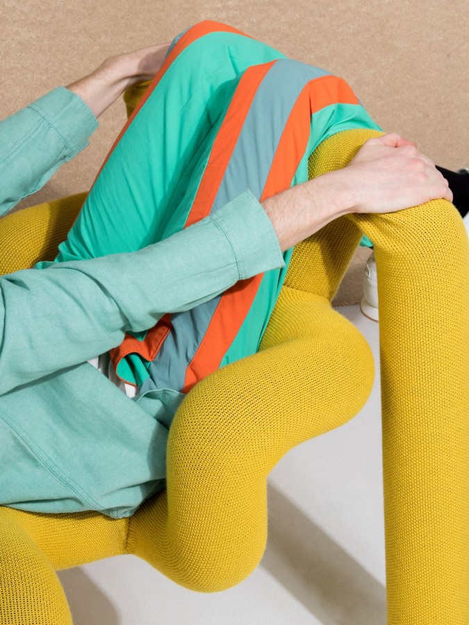 Knit ist ein strapazierfähiger Strickstoff mit natürlichen Festigkeitseigenschaften. Dieser Wollstoff wird mit einem durchgehenden Faden verarbeitet und bietet die nötige Elastizität, um sich der jeweiligen Form des Sessels anzupassen, die Oberfläche weist das charakteristische Karomuster auf.
