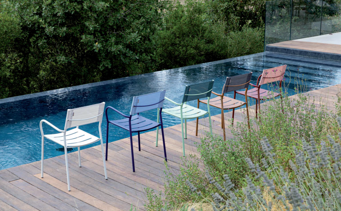 Vera-Stuhl von Vermobil. Ein schlichtes Design, das mit einer eleganten und zeitlosen Silhouette die Persönlichkeit eines Stuhls zum Ausdruck bringt. Mit seiner Rohrstruktur, der perforierten Sitzfläche, dem bequemen Sitzkissen – besonders breit und bequem – und der Stoffrückenlehne für mehr Komfort wird es durch lebendige Farbkombinationen zwischen den Materialien bereichert.