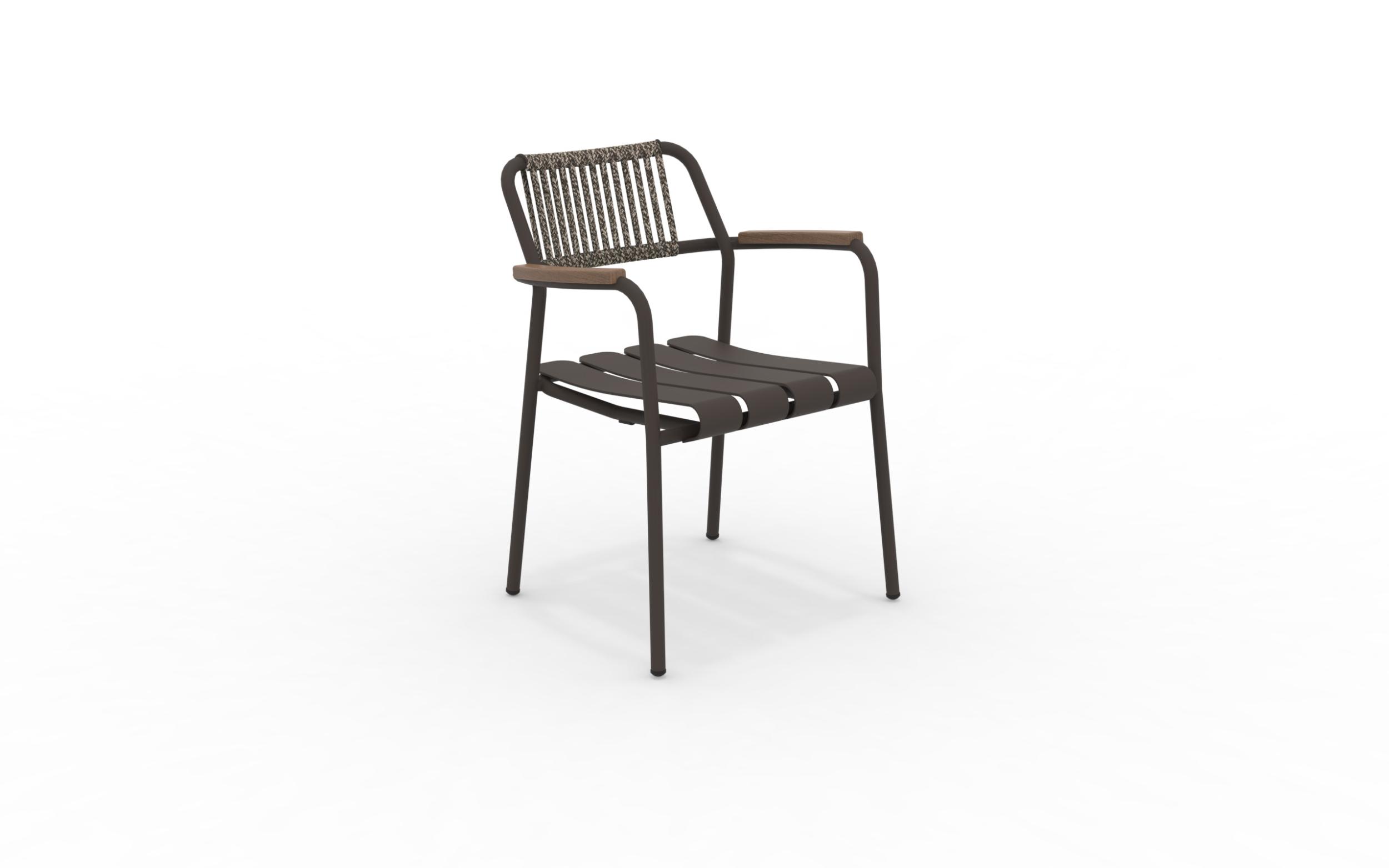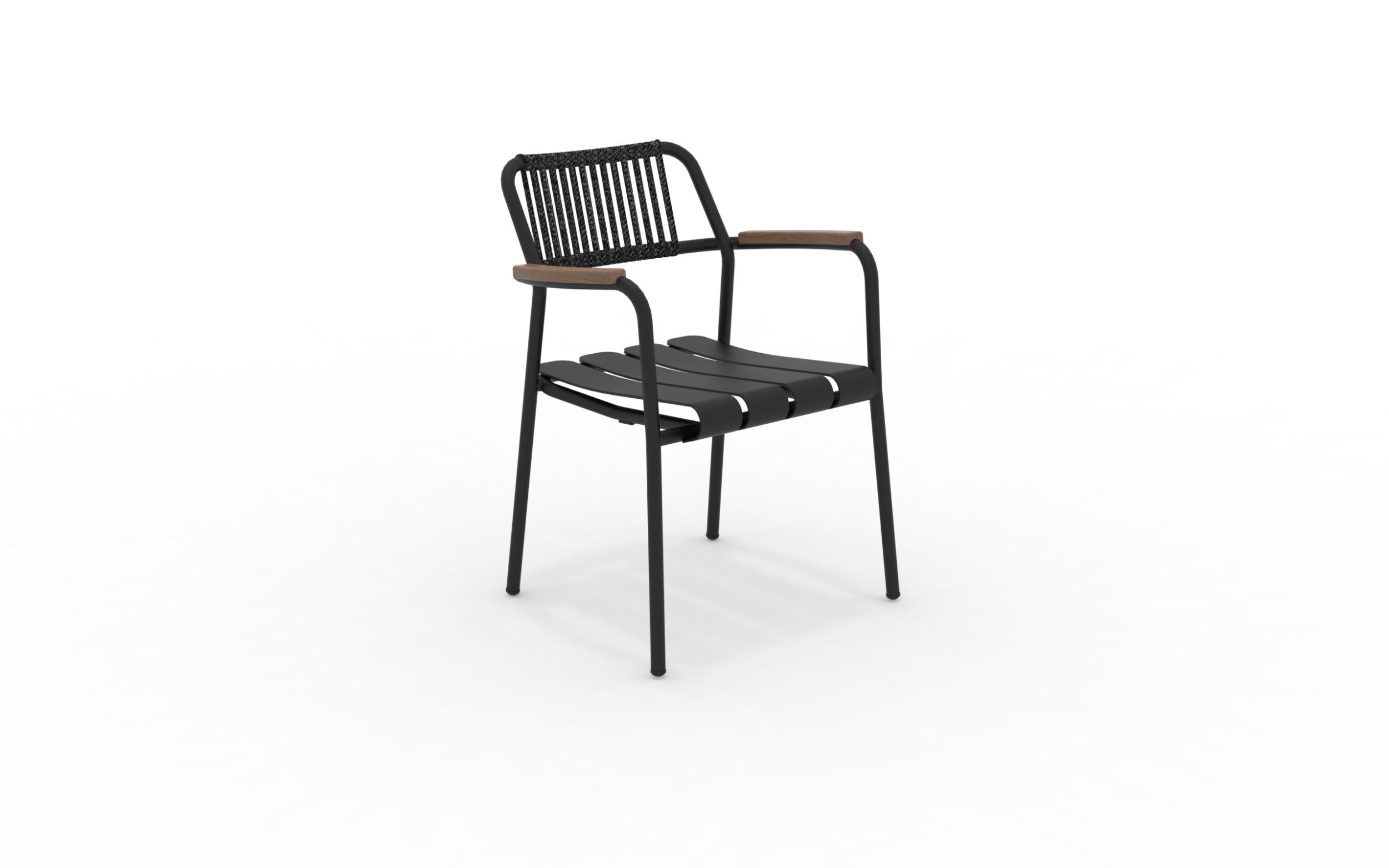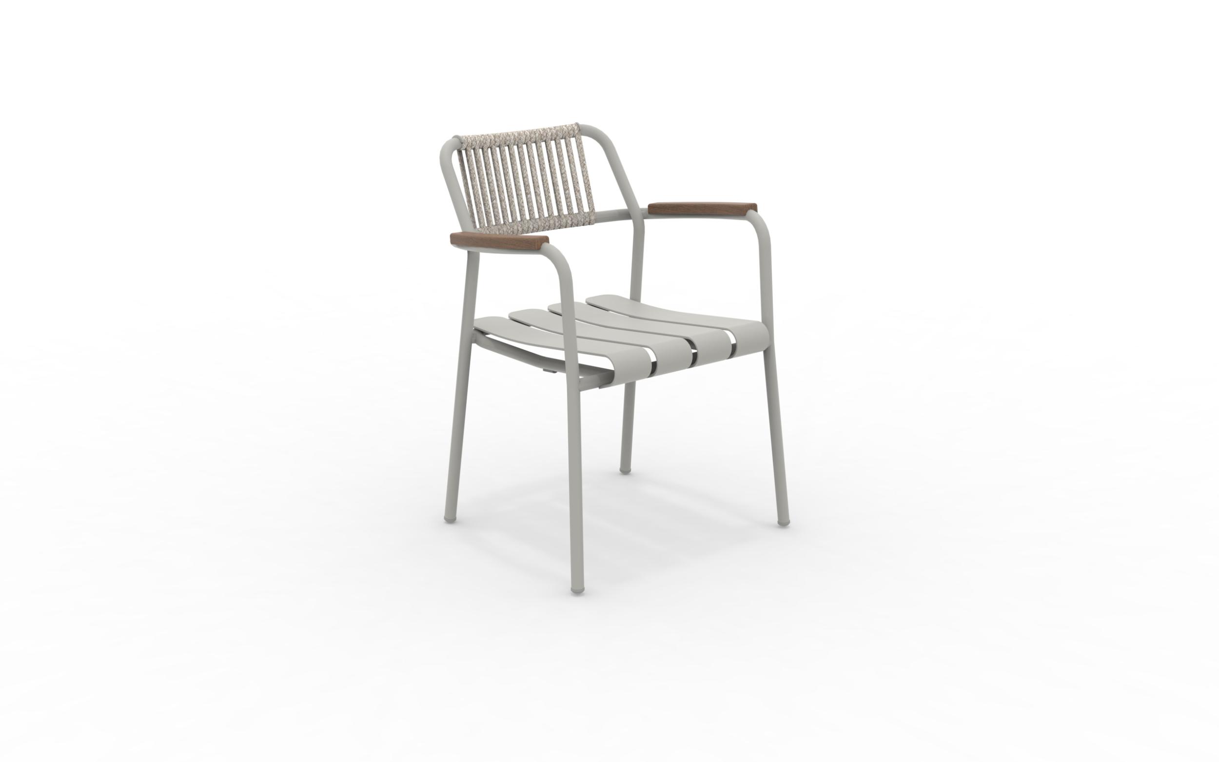 Der Verdea Rope-Sessel aus Aluminium, Seil und FSC-Teakholz an den Armlehnen von Vermobil ist ein Einrichtungsaccessoire, das sich für jeden Garten oder jedes Wohnzimmer im Freien eignet. Dieser Sessel mit schlichten und modernen Linien vereint Stil und Vielseitigkeit, da er stapelbar und in zahlreichen Farben erhältlich ist. Stapelbarer Sessel.