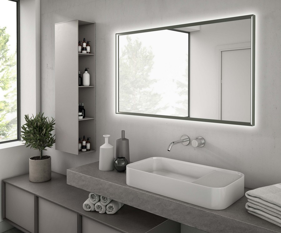 VIP 2 + 4 Form- und Funktionsspiegel mit doppelter Frontbeleuchtung an den beiden Schmalseiten und Hinterleuchtung an allen 4 Seiten. Das Frontlicht ist so positioniert, dass es das Licht direkt auf den Spiegel lenkt. Ein verzinkter Aluminiumrahmen umschließt einen mit einer Sicherheitsfolie versehenen Spiegel. Die Schutzscheibe besteht aus opalem Polycarbonat. Netzteil und Installationszubehör sind im Lieferumfang enthalten. Erhältlich mit Schalter. Erhältlich in vier Ausführungen: Titanbronze, Vintage Gold, Brill, Schwarz.