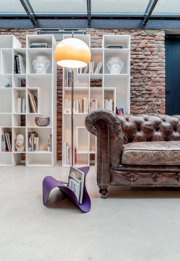 Zeitungsständer aus gebogenem Metall und mit Öko-Leder bezogen. Ein phantasievolles und originelles Alltagsobjekt, das eingehend untersucht wurde, um nichts dem Zufall zu überlassen.