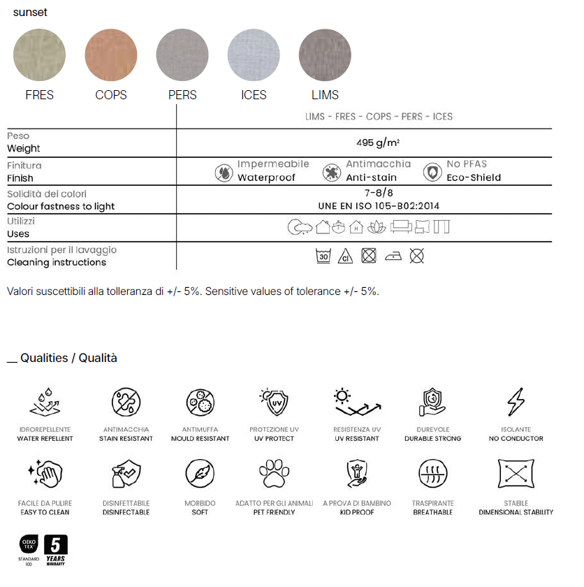 Per visionare anche i colori disponibili su richiesta cliccare su "SCHEDA TECNICA"