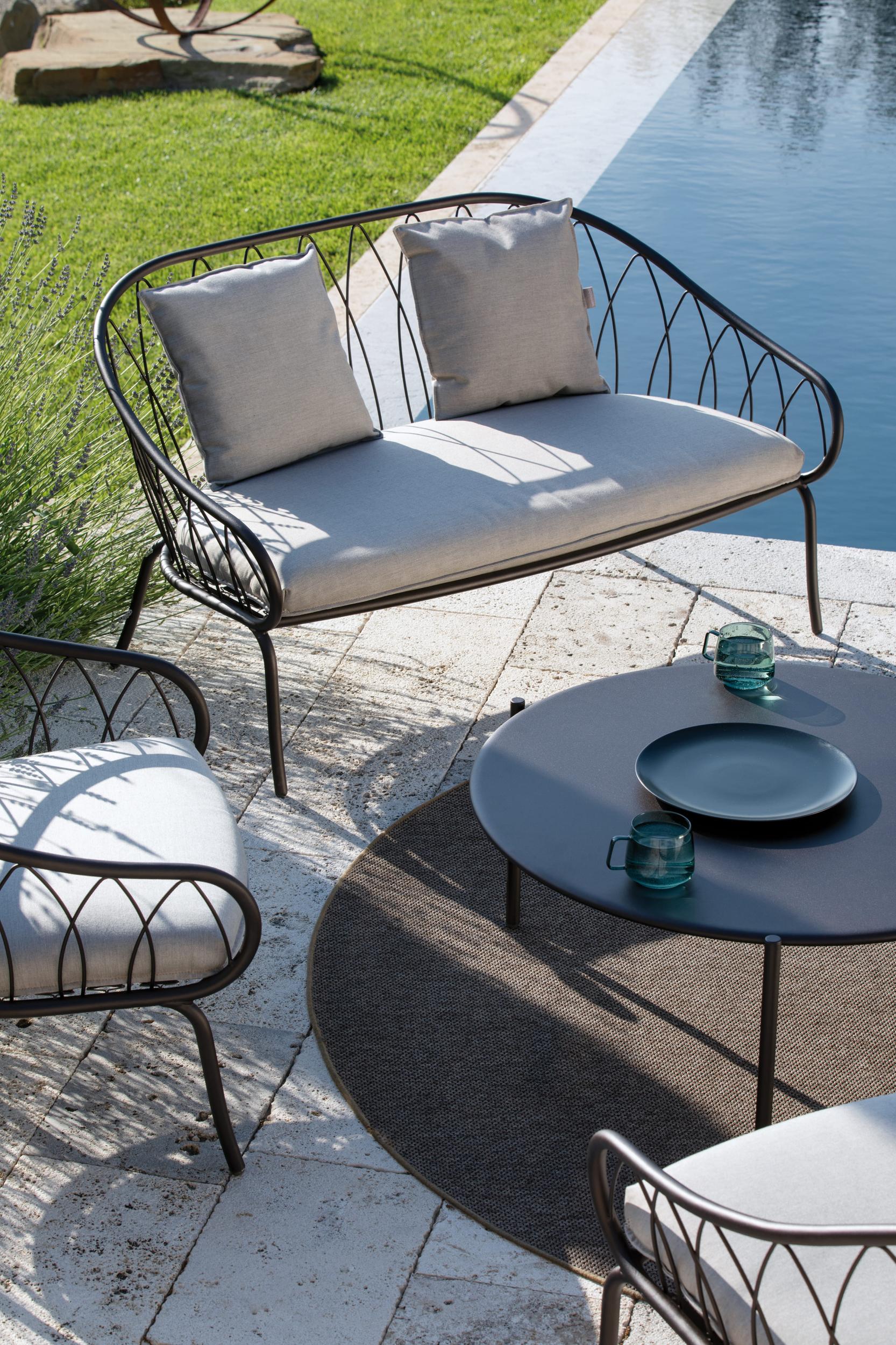 Una collezione dal gusto contemporaneo, in cui l’intreccio di forme geometriche basiche e linee essenziali crea un’ atmosfera dinamica e funzionale. Il salotto all’aperto diventa uno spazio fluido e a tratti onirico, che si integra perfettamente in ogni ambiente.