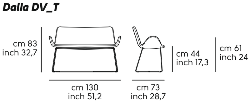 Divano Dalia DV/DVE M TS struttura in metallo e seduta imbottita. Possibilità di scelta tra schienale alto con poggia testa o basso imbottito