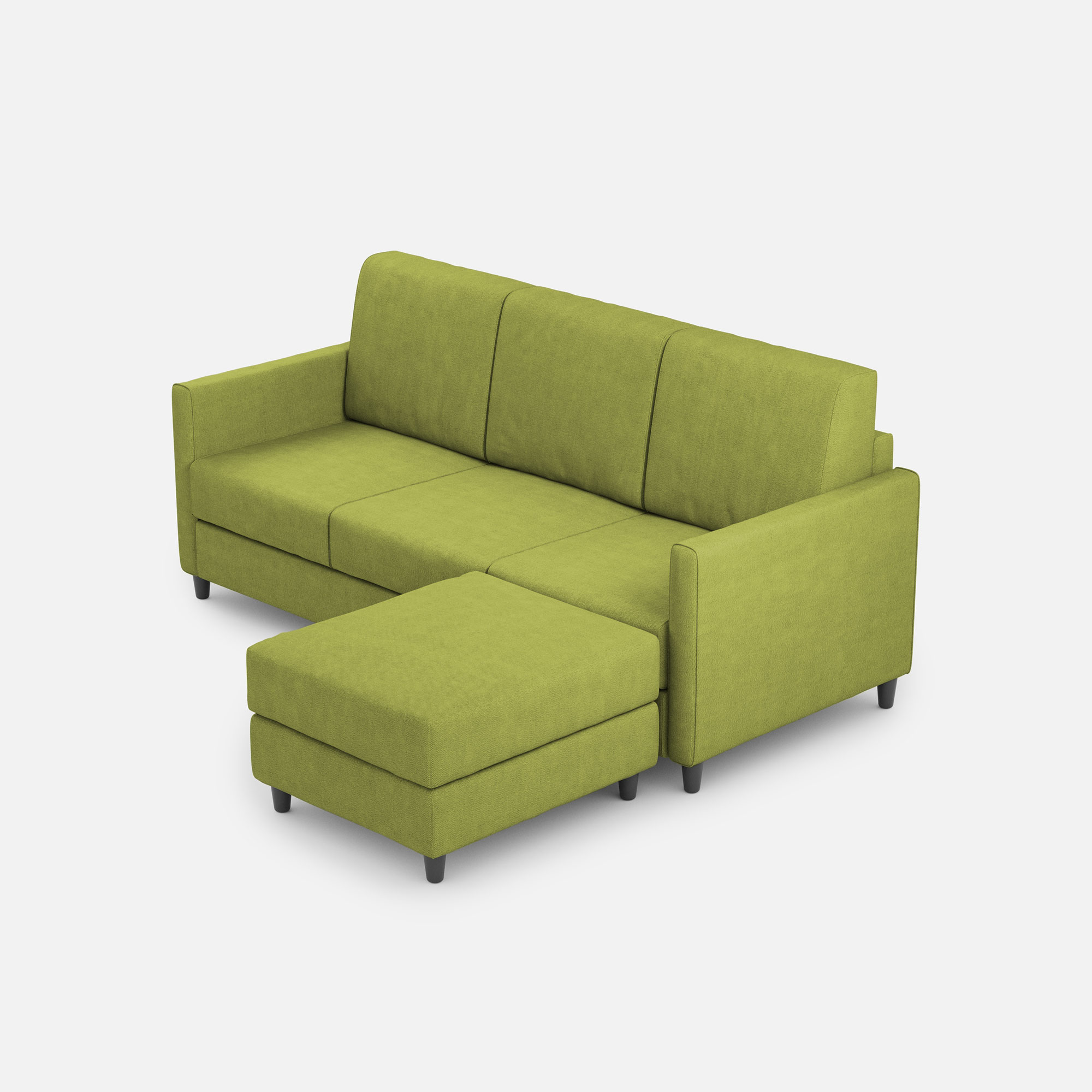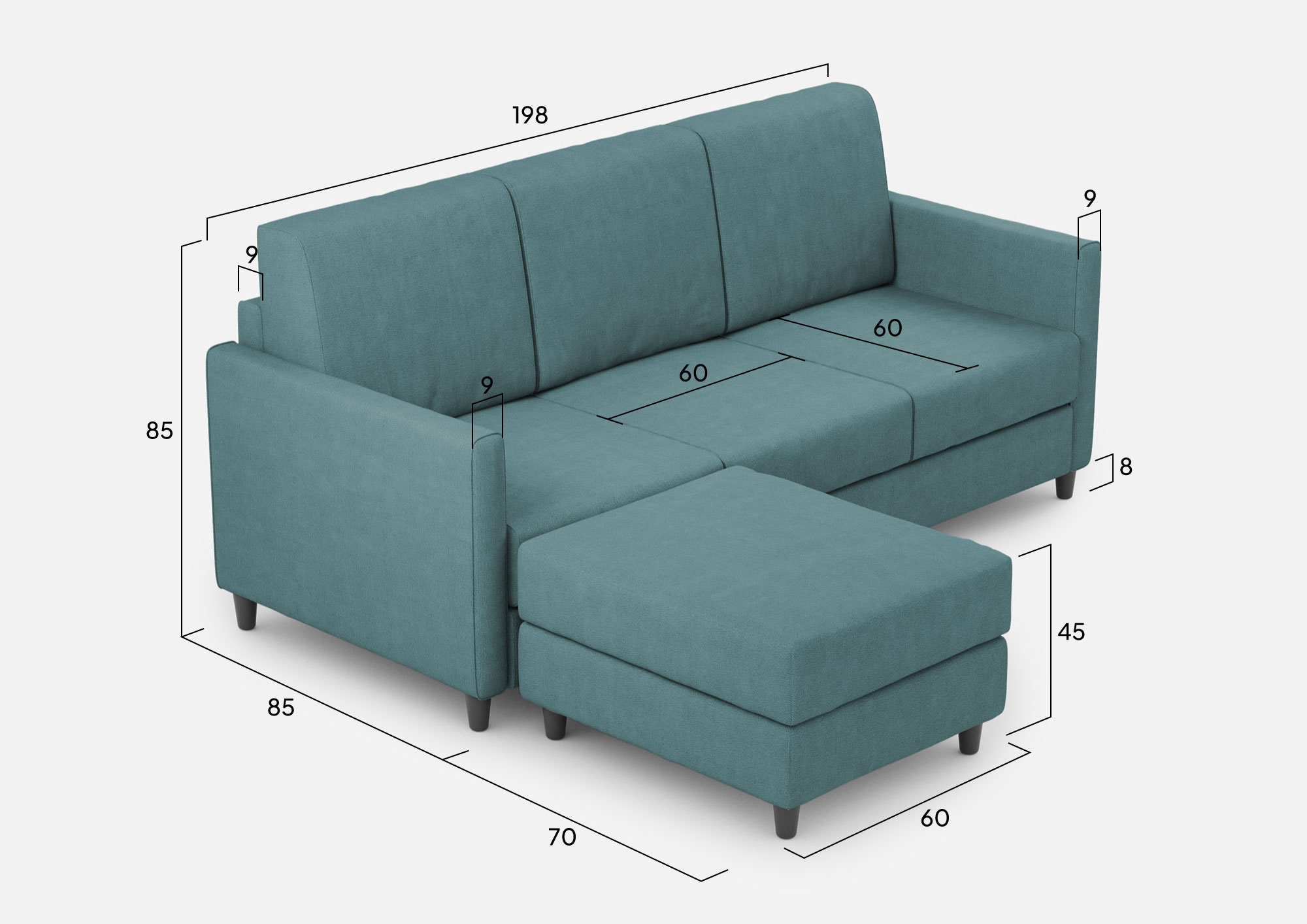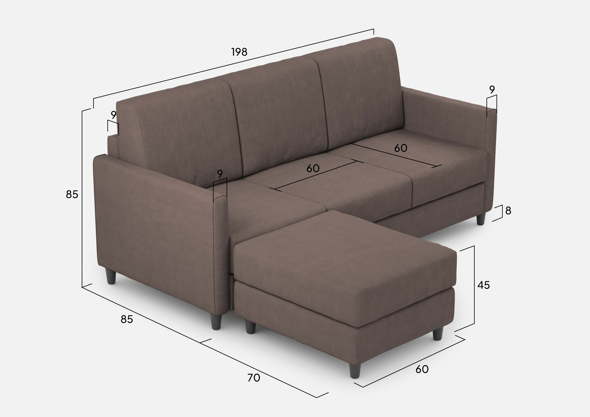 Il nostro divano a 3 posti con pouf è il complemento perfetto per il tuo salotto, elegante e confortevole, è progettato per offrire la massima comodità e stile alla tua casa. La seduta a contatto con il retro-schienale permette di avere il peso perfettamente nel centro del cuscino, assicurando un comfort ai massimi livelli. Realizzato con materiali di alta qualità, tra cui un robusto telaio e imbottitura in schiuma ad alta densità, per garantire la massima durata e comfort. Il pouf lo metti dove vuoi, può essere utilizzato come poggiapiedi o come seduta aggiuntiva quando hai ospiti, offrendo una maggiore flessibilità e ospitalità ed ha lo stesso rivestimento del divano, creando un’armonia visiva perfetta. È possibile bloccarlo con dei fissaggi semplici e non visibili che sono presenti in corrispondenza di ogni seduta, questo ne impedirà il suo movimento e potrai scegliere se posizionarlo a dx, sx o centralmente, in base alle esigenze del momento e del tuo spazio, in alternativa lo puoi tenere libero e spostarlo dove vuoi in maniera super veloce. Il design è elegante e moderno, con linee pulite e un aspetto minimalista che si adatta perfettamente a qualsiasi ambiente e arredo, le colorazioni dei rivestimenti lo rendono versatile e di facile abbinamento. Il divano Karay a 3 posti con pouf è la scelta perfetta per chi cerca il massimo comfort e stile, aggiungi questo pezzo alla tua casa e goditi una seduta comoda e rilassante con la tua famiglia e i tuoi amici.