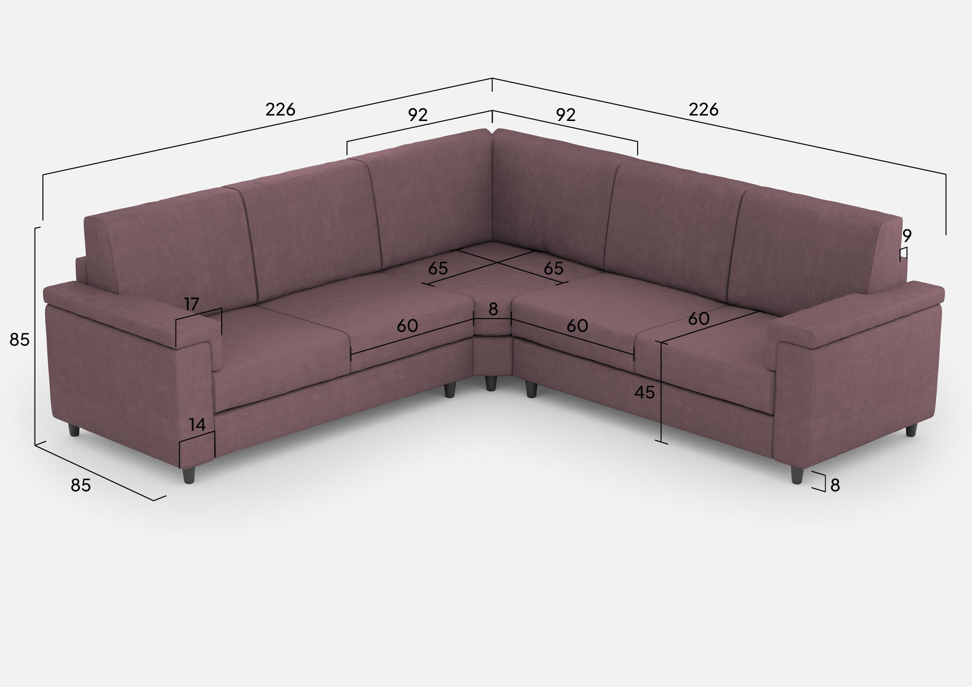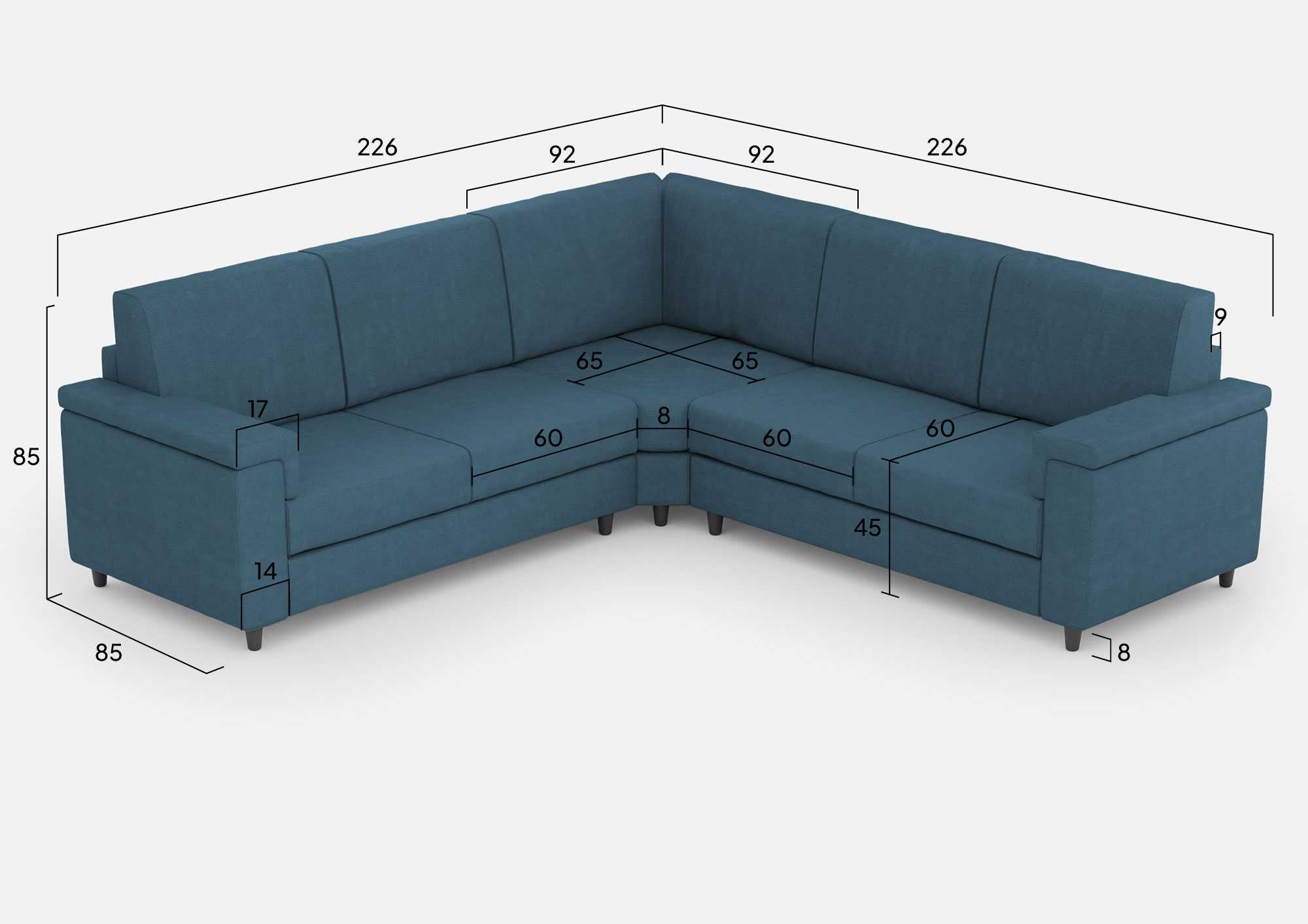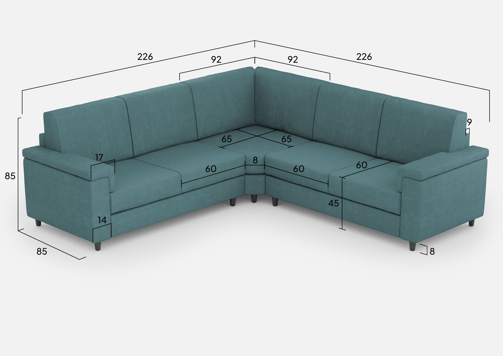 Rivestimento completamente sfoderabile, seduta a contatto con il retro-schienale che assicura un comfort unico. Altezza della seduta da terra: 45cm. Altezza piedini in legno: 8cm. Dettagli del tessuto: 100% poliestere, idrorepellente, peso circa 320gr/mq. Indicazioni di lavaggio: max 30°, stirabile a bassa temperatura, lavabile a secco, no asciugatrice, non candeggiare. Le macchie provocate da liquidi possono essere eliminate semplicemente con un panno umido. Dettagli tecnici della seduta: poliuretano espanso densità: 24,6 Kg/m3, portanza 40% 3,8 KPa Din 53577, sforzo di pressione 40% 150N Din 53576/B, deformazione permanente 50% 3% Din 53572. Dettagli tecnici dello schienale: poliuretano espanso densità: 14,7 Kg/m3, resistenza alla compressione 40% 1,5 KPa UNI EN ISO 3386-1, resa elastica: 38 UNI EN ISO 8307.