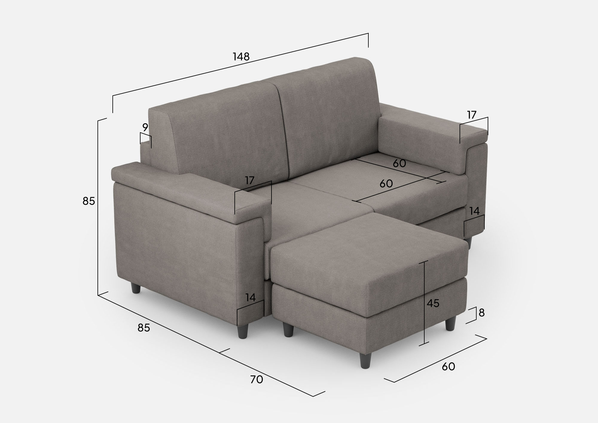 Divano Marrak a 2 posti con pouf: il divano moderno e versatile per il tuo salotto Se stai cercando un divano che unisca comfort, design e funzionalità, il divano Sakar a 2 posti con pouf è quello che fa per te. Questo divano ha una seduta spaziosa e accogliente, realizzata con una schiuma di alta qualità che ti assicura un comfort duraturo. Il pouf è un elemento in più che puoi usare come vuoi: lo puoi attaccare al divano per creare una chaise longue, lo puoi spostare dove ti serve o lo puoi usare come seduta aggiuntiva. Il pouf ha lo stesso tessuto del divano, creando un insieme armonioso e raffinato. Il divano Marrak ha uno stile moderno e minimalista, con linee semplici e colori neutri. Si adatta perfettamente a ogni tipo di salotto e di arredamento, donando un tocco di eleganza e personalità. Ordina ora il divano Sakar a 2 posti con pouf e scopri il piacere di rilassarti e di ricevere ospiti nel tuo salotto. Il divano Sakar è il divano che cercavi.