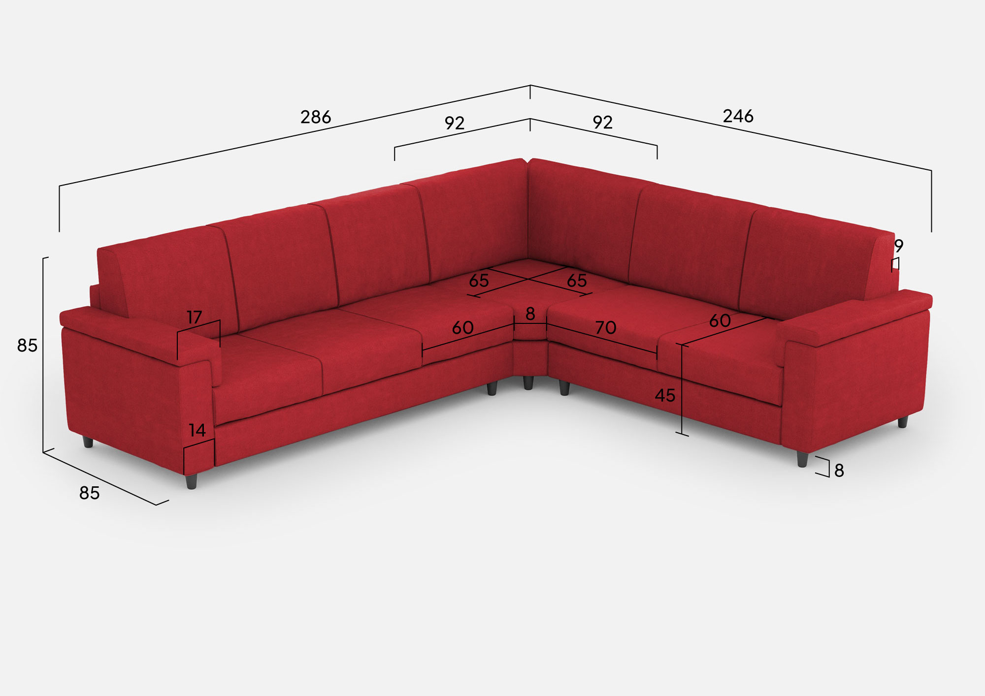 Rivestimento completamente sfoderabile, seduta a contatto con il retro-schienale che assicura un comfort unico. Altezza della seduta da terra: 45cm. Altezza piedini in legno: 8cm. Dettagli del tessuto: 100% poliestere, idrorepellente, peso circa 320gr/mq. Indicazioni di lavaggio: max 30°, stirabile a bassa temperatura, lavabile a secco, no asciugatrice, non candeggiare. Le macchie provocate da liquidi possono essere eliminate semplicemente con un panno umido. Dettagli tecnici della seduta: poliuretano espanso densità: 24,6 Kg/m3, portanza 40% 3,8 KPa Din 53577, sforzo di pressione 40% 150N Din 53576/B, deformazione permanente 50% 3% Din 53572. Dettagli tecnici dello schienale: poliuretano espanso densità: 14,7 Kg/m3, resistenza alla compressione 40% 1,5 KPa UNI EN ISO 3386-1, resa elastica: 38 UNI EN ISO 8307.