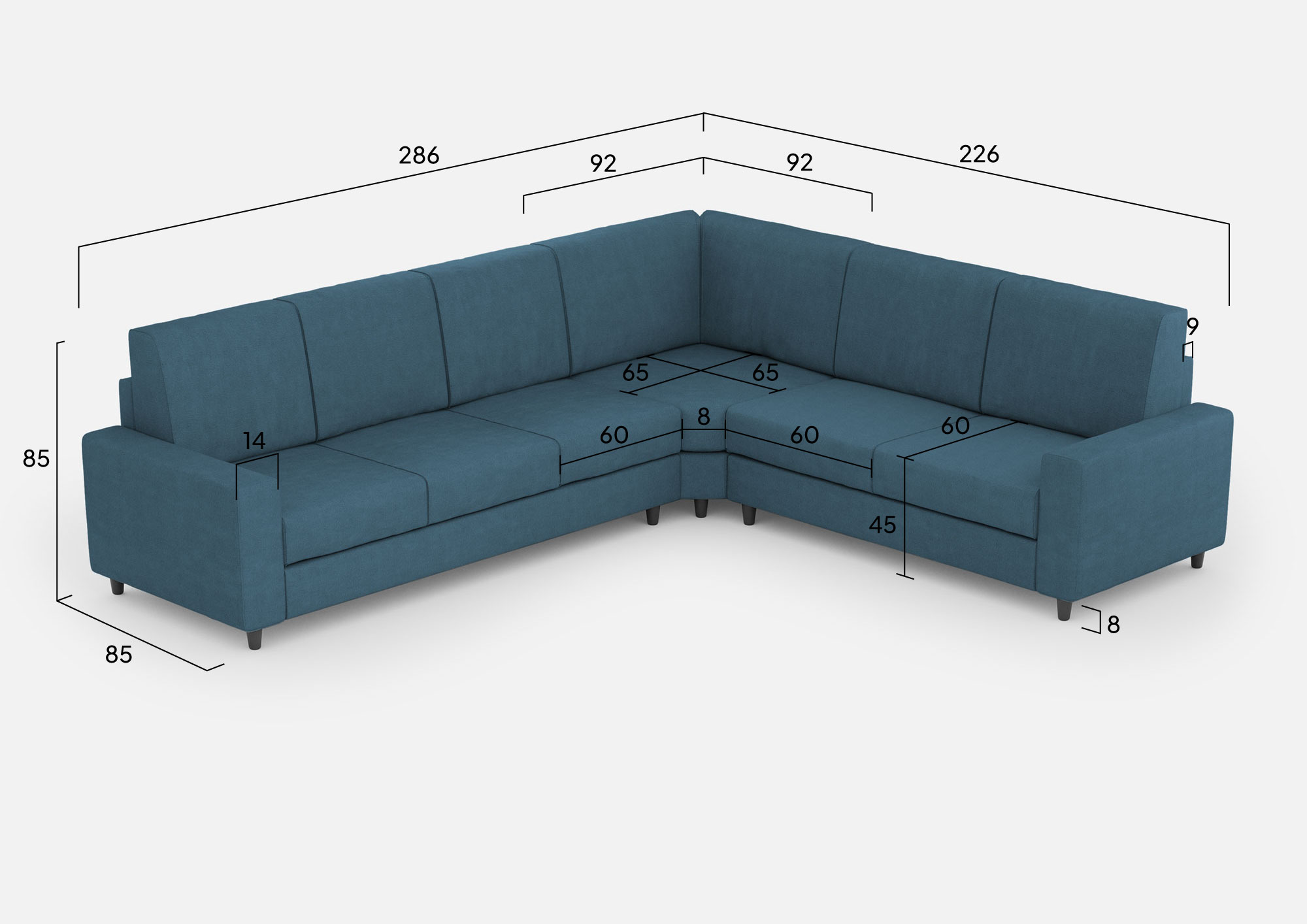 Rivestimento completamente sfoderabile, seduta a contatto con il retro-schienale che assicura un comfort unico. Altezza della seduta da terra: 45cm. Altezza piedini in legno: 8cm. Dettagli del tessuto: 100% poliestere, idrorepellente, peso circa 320gr/mq. Indicazioni di lavaggio: max 30°, stirabile a bassa temperatura, lavabile a secco, no asciugatrice, non candeggiare. Le macchie provocate da liquidi possono essere eliminate semplicemente con un panno umido. Dettagli tecnici della seduta: poliuretano espanso densità: 24,6 Kg/m3, portanza 40% 3,8 KPa Din 53577, sforzo di pressione 40% 150N Din 53576/B, deformazione permanente 50% 3% Din 53572. Dettagli tecnici dello schienale: poliuretano espanso densità: 14,7 Kg/m3, resistenza alla compressione 40% 1,5 KPa UNI EN ISO 3386-1, resa elastica: 38 UNI EN ISO 8307.
