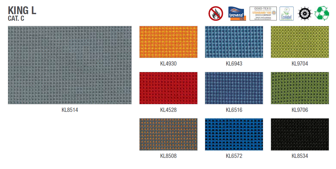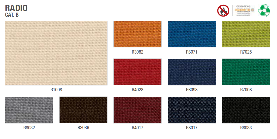 Struttura dello schienale in multistrato di faggio spessore 12 mm. Imbottitura dello schienale in poliuretano espanso tagliato da blocco, ignifugo, spessore 50 mm, densità 30 kg/m3. Struttura del sedile in multistrato di faggio spessore 12 mm. Imbottitura del sedile in poliuretano espanso tagliato da blocco, ignifugo, spessore 50 mm, densità 30 kg/m3. Telaio portante in tubolare d’acciaio a sezione tonda Ø 22 mm., verniciato a polveri epossidiche colore bianco oppure finitura cromata. Piedini in nylon colore nero.