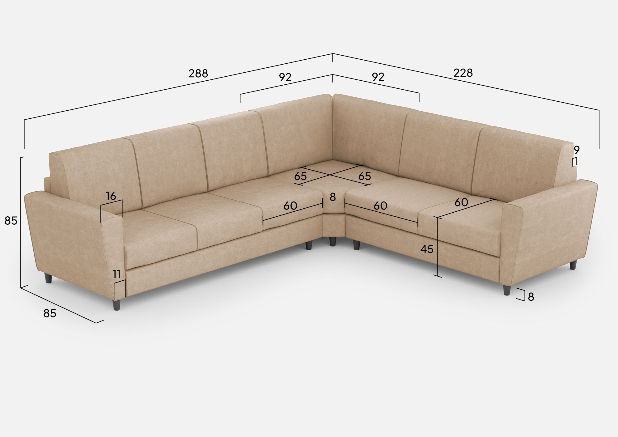 Rivestimento completamente sfoderabile, seduta a contatto con il retro-schienale che assicura un comfort unico. Altezza della seduta da terra: 45cm. Altezza piedini in legno: 8cm. Dettagli del tessuto: 100% poliestere, idrorepellente, peso circa 320gr/mq. Indicazioni di lavaggio: max 30°, stirabile a bassa temperatura, lavabile a secco, no asciugatrice, non candeggiare. Le macchie provocate da liquidi possono essere eliminate semplicemente con un panno umido. Dettagli tecnici della seduta: poliuretano espanso densità: 24,6 Kg/m3, portanza 40% 3,8 KPa Din 53577, sforzo di pressione 40% 150N Din 53576/B, deformazione permanente 50% 3% Din 53572. Dettagli tecnici dello schienale: poliuretano espanso densità: 14,7 Kg/m3, resistenza alla compressione 40% 1,5 KPa UNI EN ISO 3386-1, resa elastica: 38 UNI EN ISO 8307.