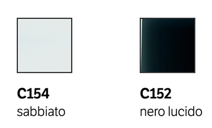 Specchiera Eidos di Bontempi. Specchio verticale con fascia in cristallo laccato nero lucido o cristallo sabbiato bianco.
