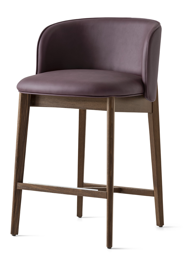 Abrey CS2042-MTO stool by Calligaris. Abrey is the classic wooden seat reinterpreted in the name of comfort. Chair, armchair and stool are united by the large backrest that envelops the seat, supported by the rear legs. A detail that enhances the back of the seats, ideal around the table of the same line.