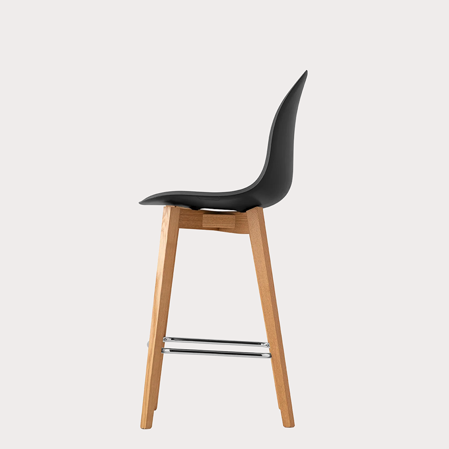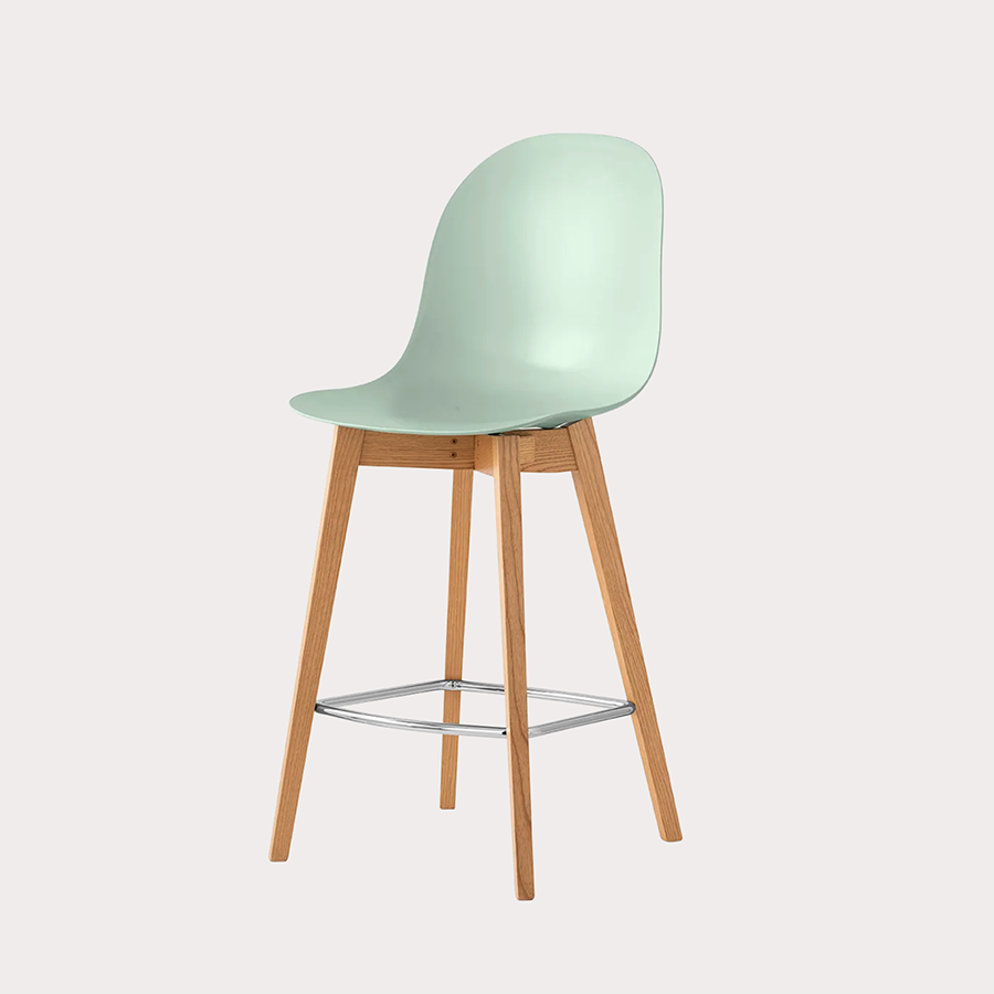 Academy CB1672 stool by Connubia with wooden frame and chrome footrest. The color variations of the shell, combinable with the different wood tones and the chrome footrest, allow us to offer more than a hundred alternatives to satisfy any aesthetic and functional need.