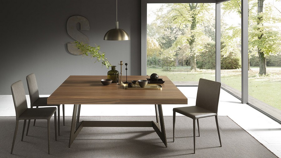 Sipario extendable table by Altacom. Extendable dining table with metal frame, telescopic mechanism, and melamine, wood, or mortar-effect top. Synchronized opening with internal folding extension.