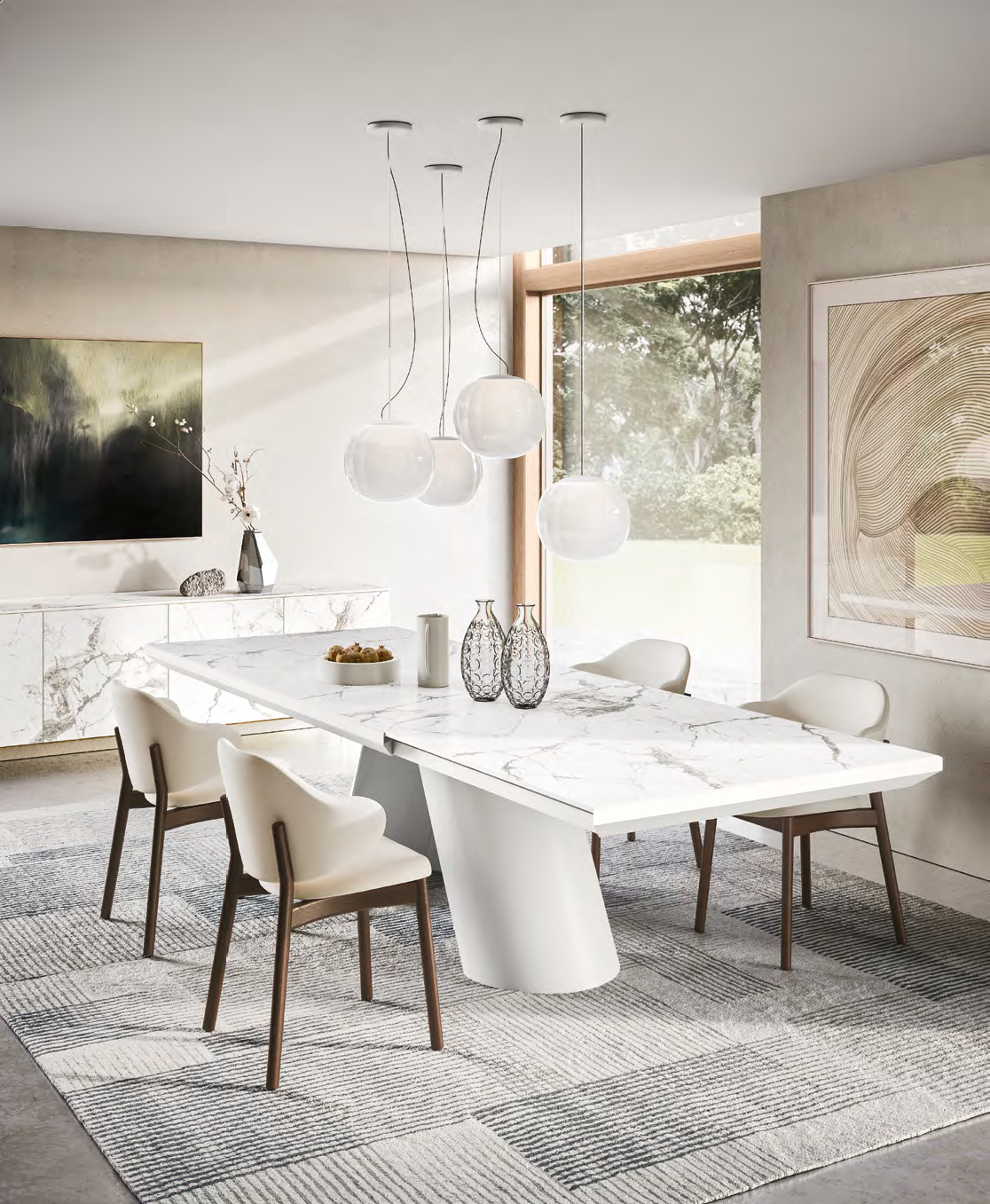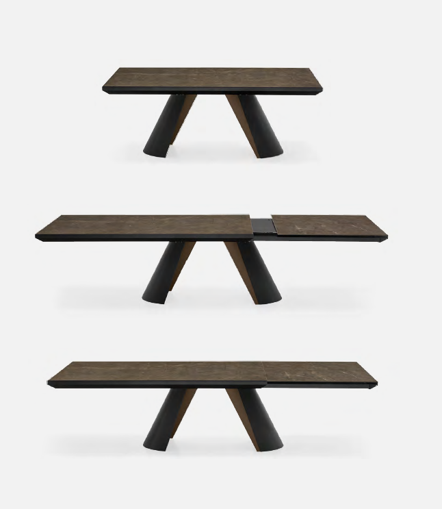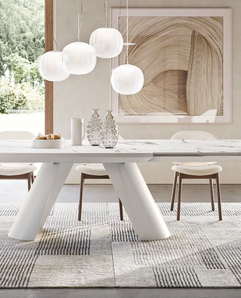 APIAN PLUS CS4132-R table by Calligaris. Apian Plus represents excellence among Calligaris tables. It stands out from the Apian table, with which it shares the characteristic double curved sheet metal that acts as a base and the patented extension mechanism, for the thicker top in which the top is embedded.