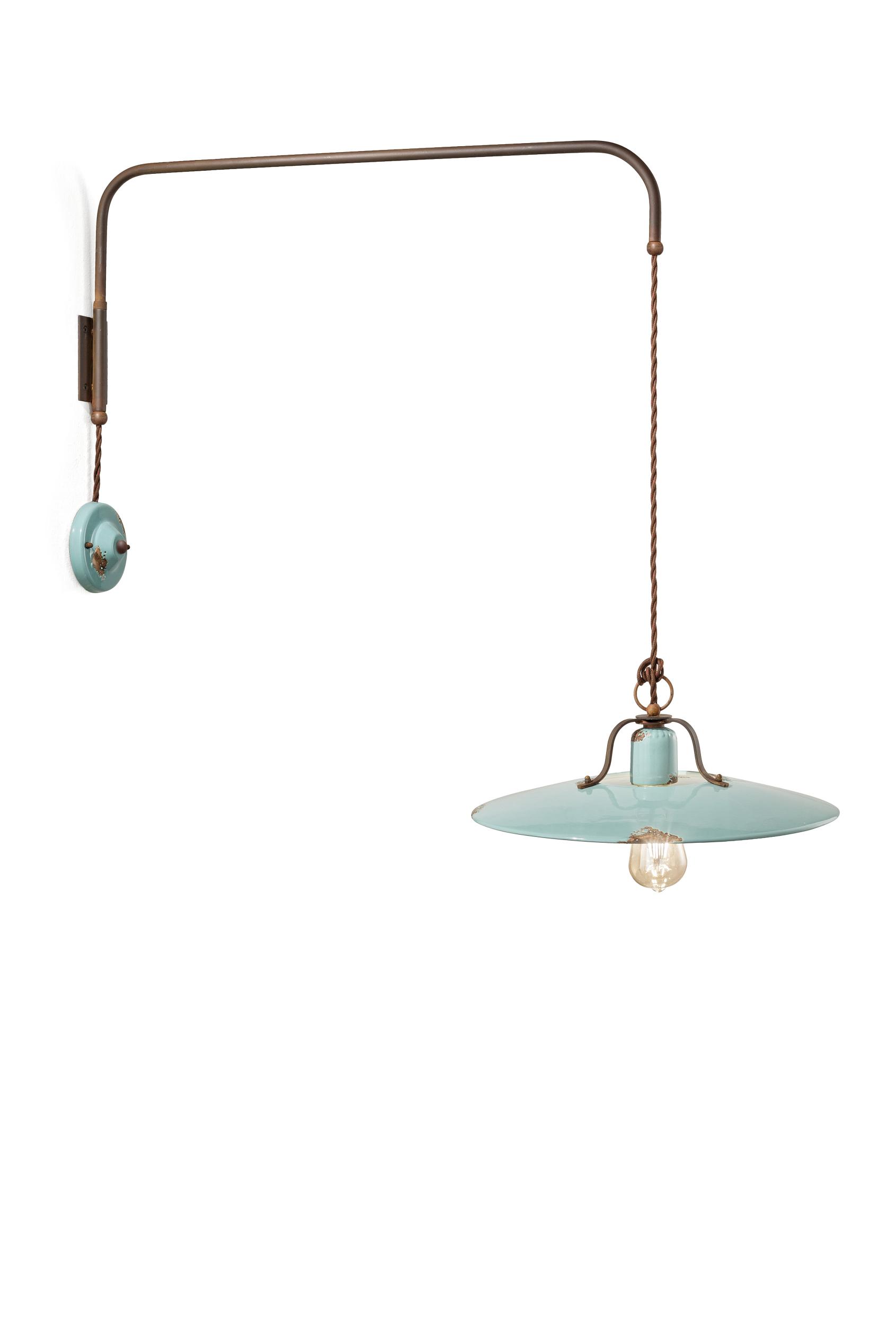 Ceramic and metal lamp with covered cotton cable.