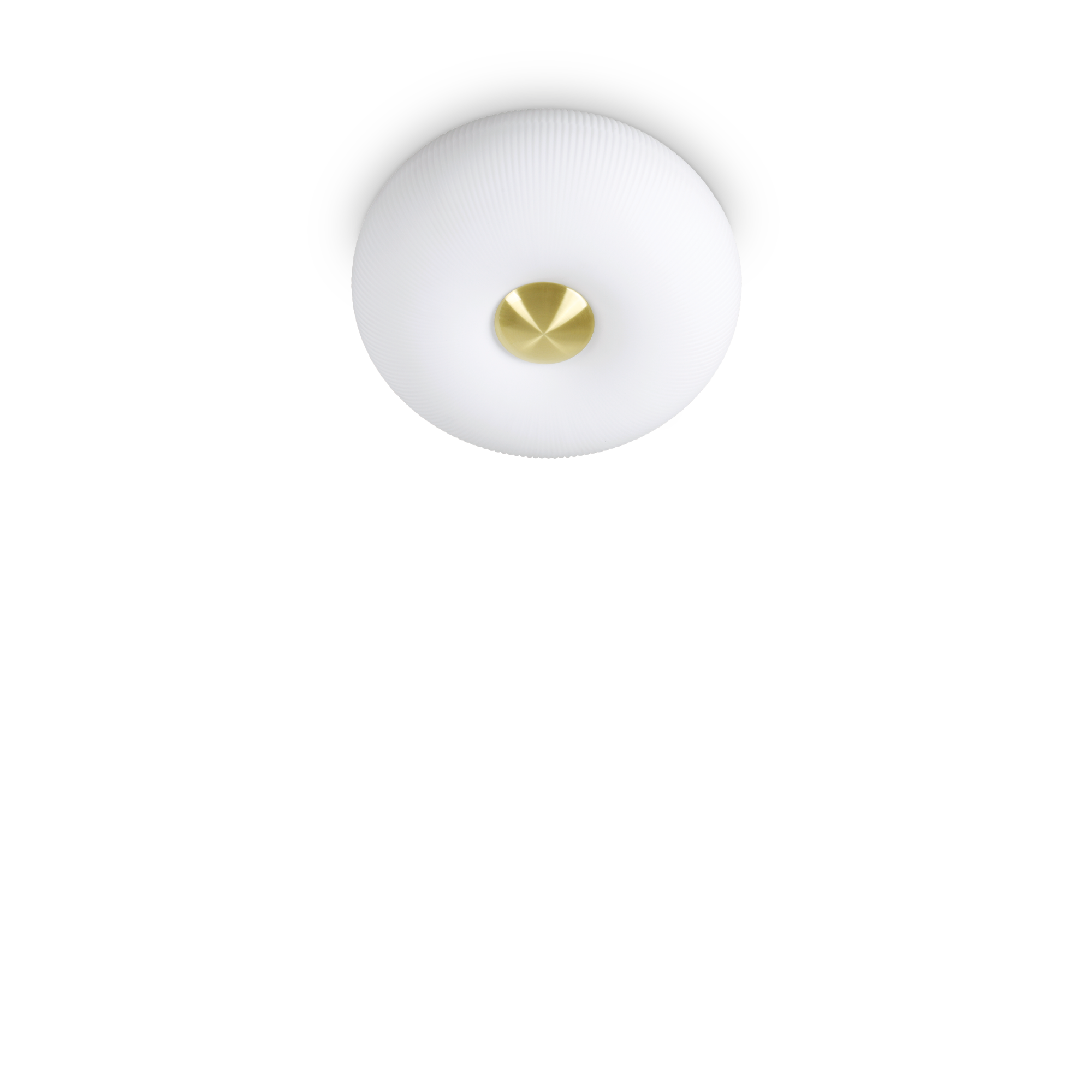 Arizona pl2 ceiling light with metal frame finished in satin brass. Diffuser in blown white glass, etched and with decorative grooves in relief. Bulbs included.