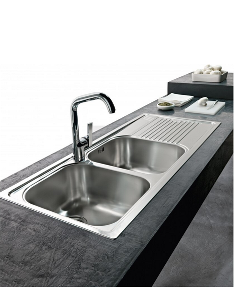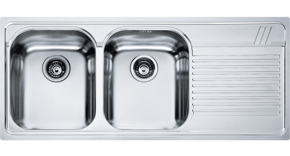 Franke Armonia AMX 621 sink with two bowls, with satin stainless steel drainer. A combination of elegance and classicism of the product which, thanks to the quality of the materials, will be a guarantee for a beautiful and valuable product.