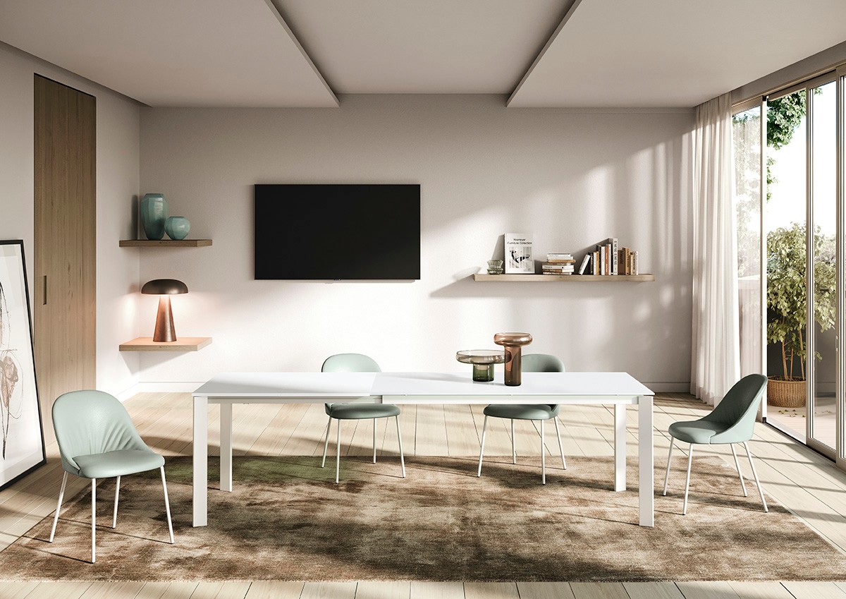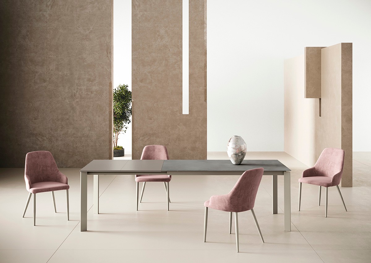 Aster table by Ingenia Bontempi, extendable table with rectangular top made of various materials, triangular leg in lacquered steel in various finishes