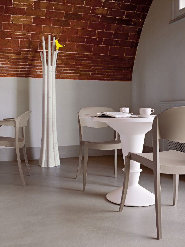 We refer to the leaves and the bird who donate a split personality: Classic hangers or lamp Totem! Made of colored polyethylene and opal, it is the brainchild of nature. Bamboo is inspired once again to nature to the leaf carrier hooks in plastic satin material.