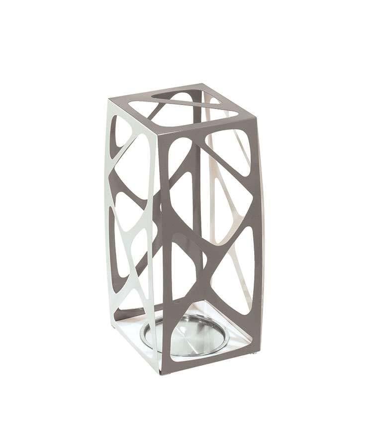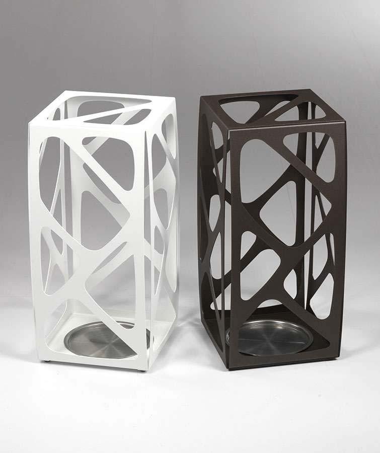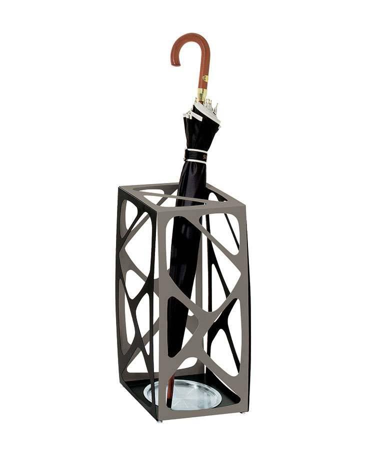 Pezzani's Basket umbrella stand in sandblasted steel with a stainless steel drip tray. A useful umbrella stand that's also a stylish addition to your home and living space.