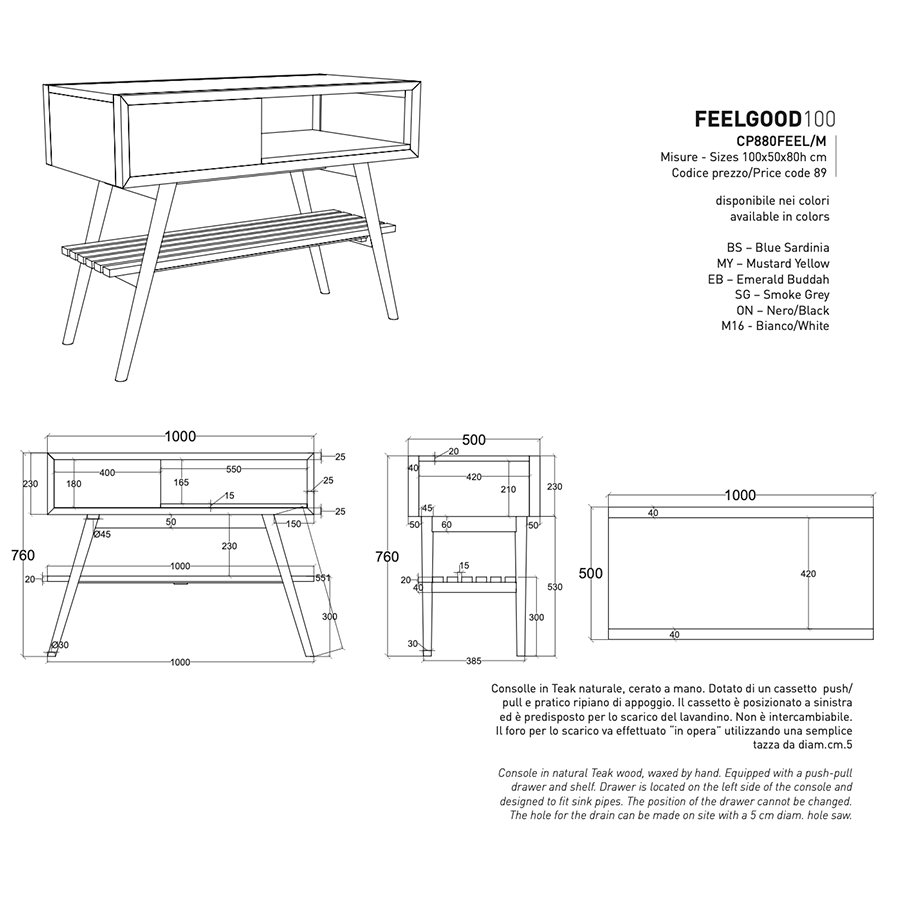 Bathroom cabinet Console Feelgood 100 CP880FEEL/M Cipì