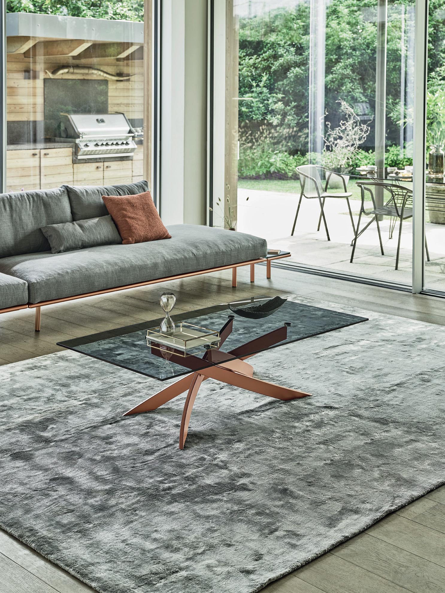 Table Artistico by Bontempi characterized by the particular weave of the structure made of lacquered steel available in different finishes. The top is available in numerous finishes. Modern, rectangular or round, dynamic, captivating, the Artistico coffee table by Bontempi is ideal for the living area.
