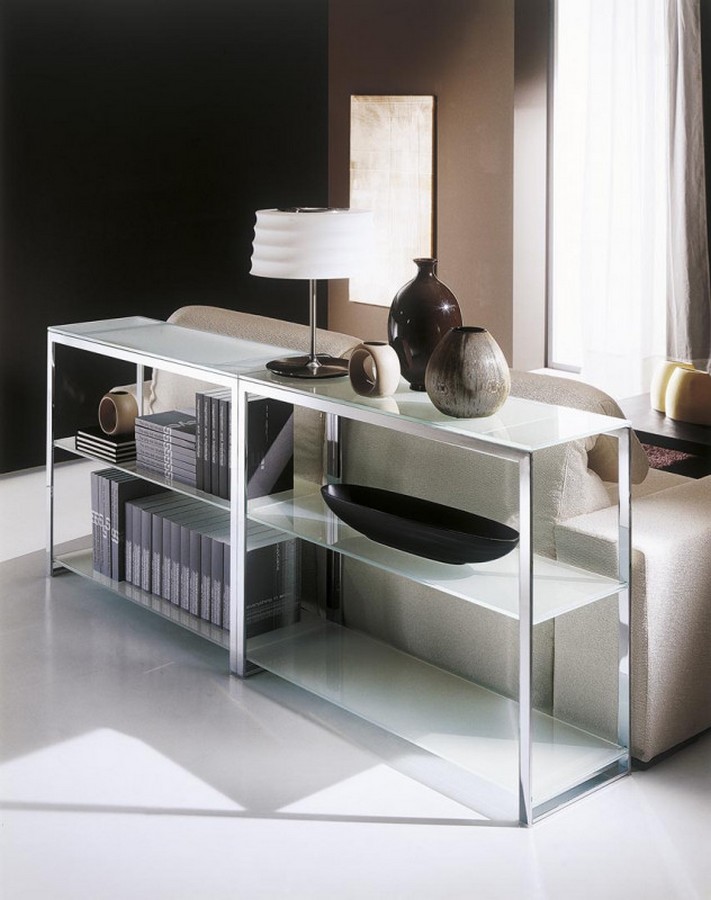 Hip Hop console table by Bontempi with lacquered steel structure in different finishes. Available in two versions: with two or three glass shelves in different finishes. Hip Hop is a modern console table ideal for furnishing offices, entrances or living rooms.