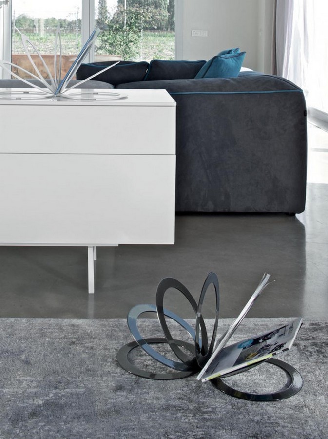 Fan magazine rack by Bontempi with unique shapes. Entirely in lacquered steel in different colors, this magazine rack will give a unique touch to all the rooms of the house.