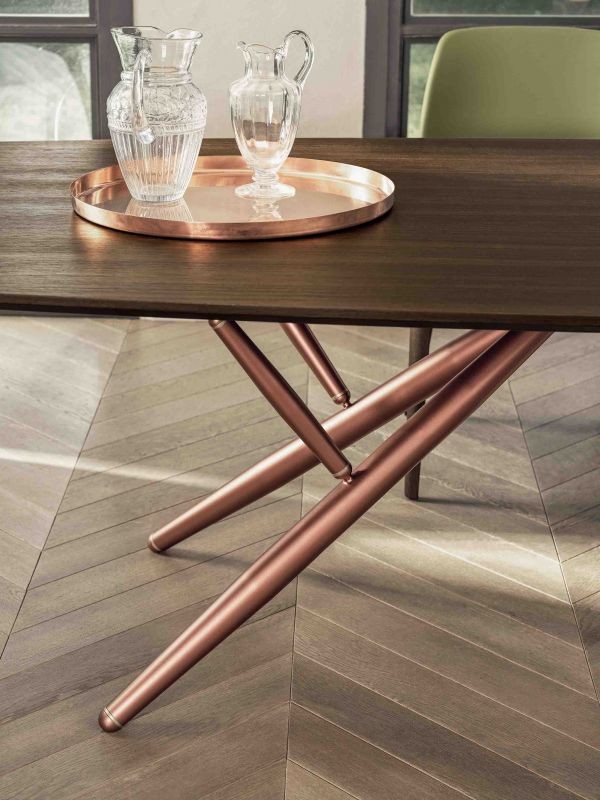 The timeless and iconic trestle base is the distinctive feature of the Bridge table. An elegant table, with attention to the smallest details, perfect both as an important dining table and as a representative desk. A timeless and always current line, enriched by decorative details that can be chosen in different colors to create the combination that best suits your furnishing style, ranging from classic black and gold to more daring touches.